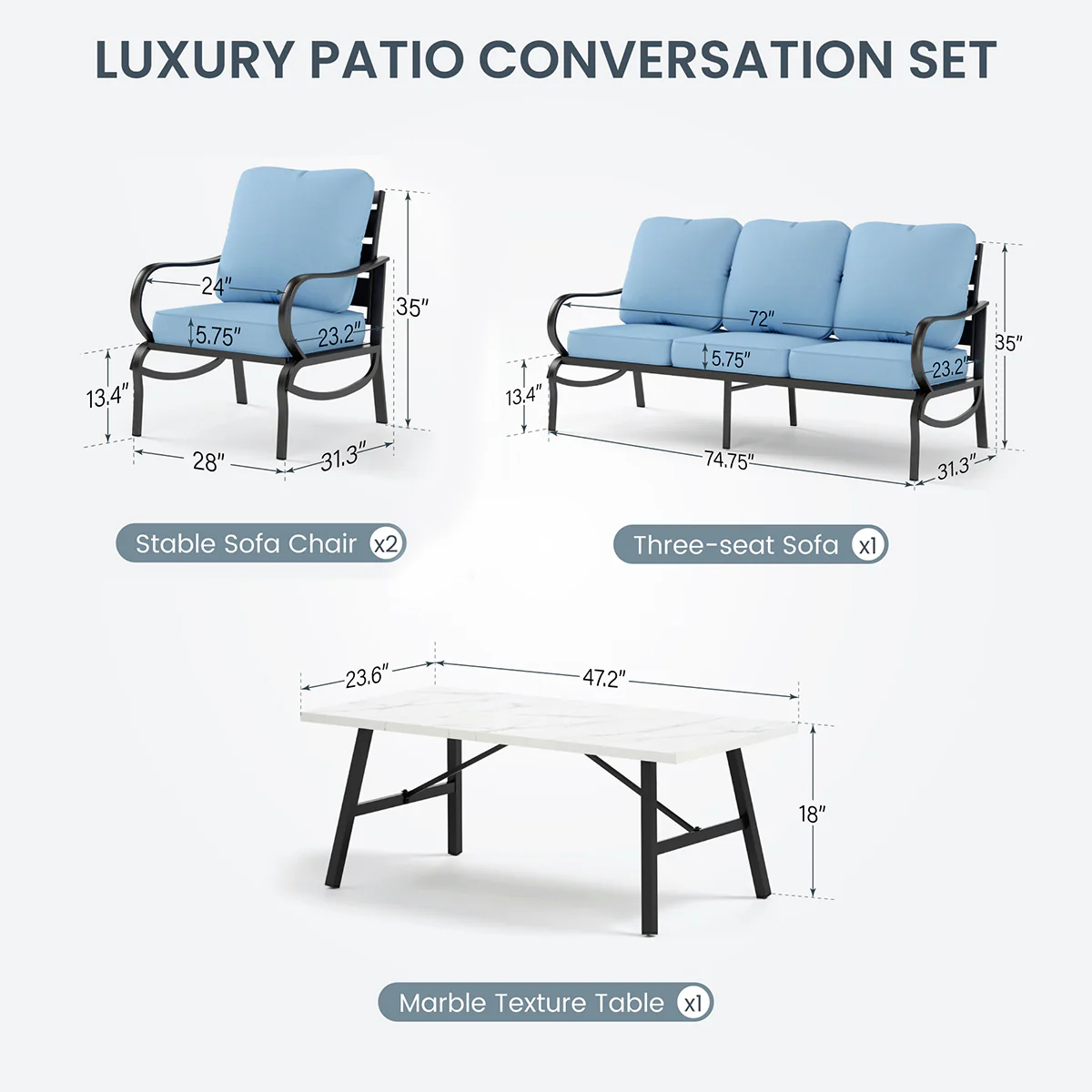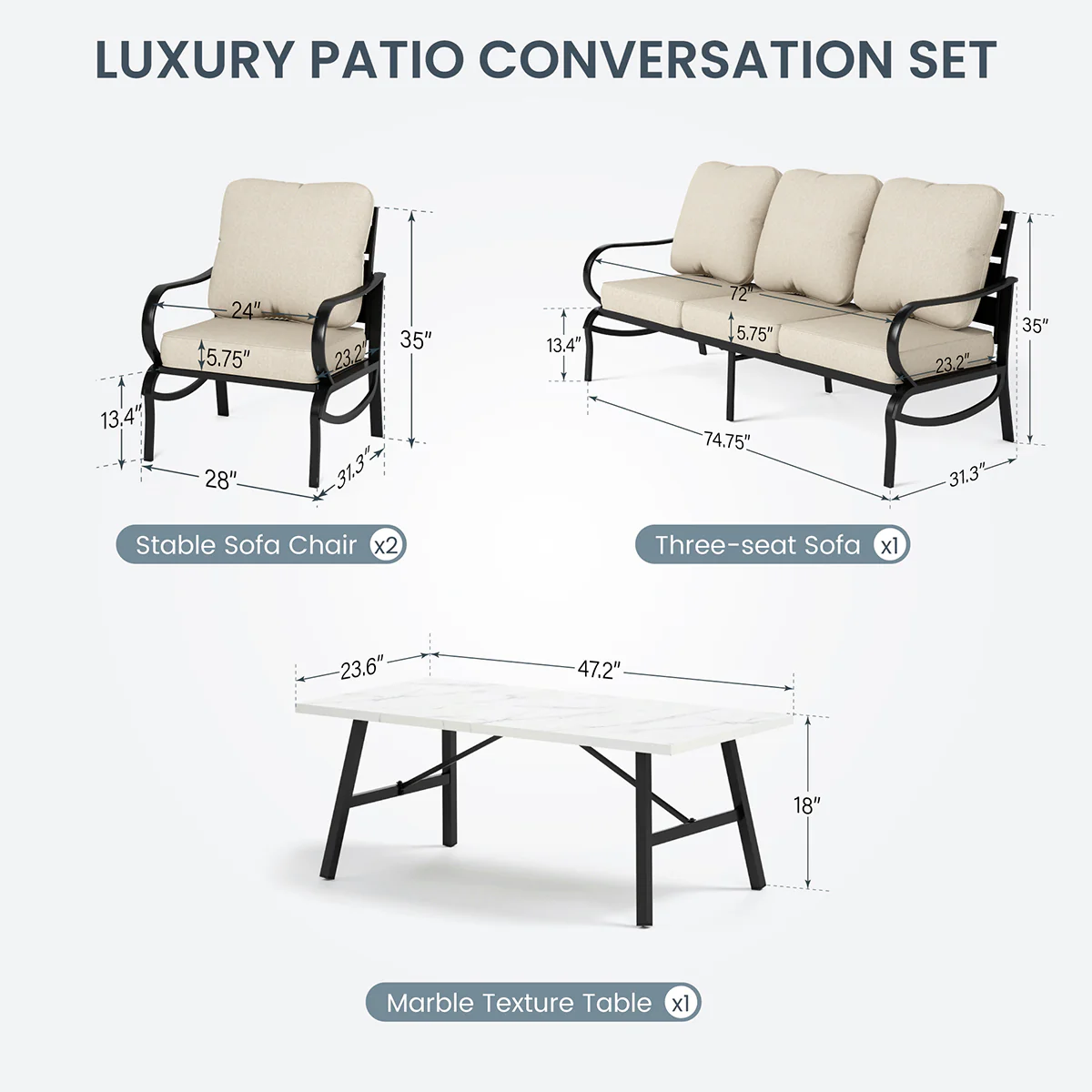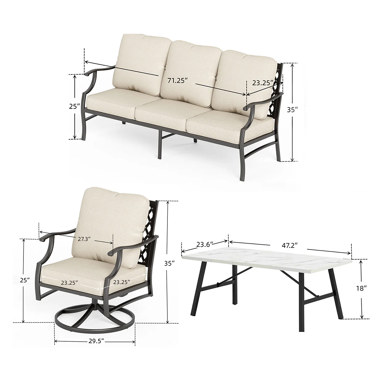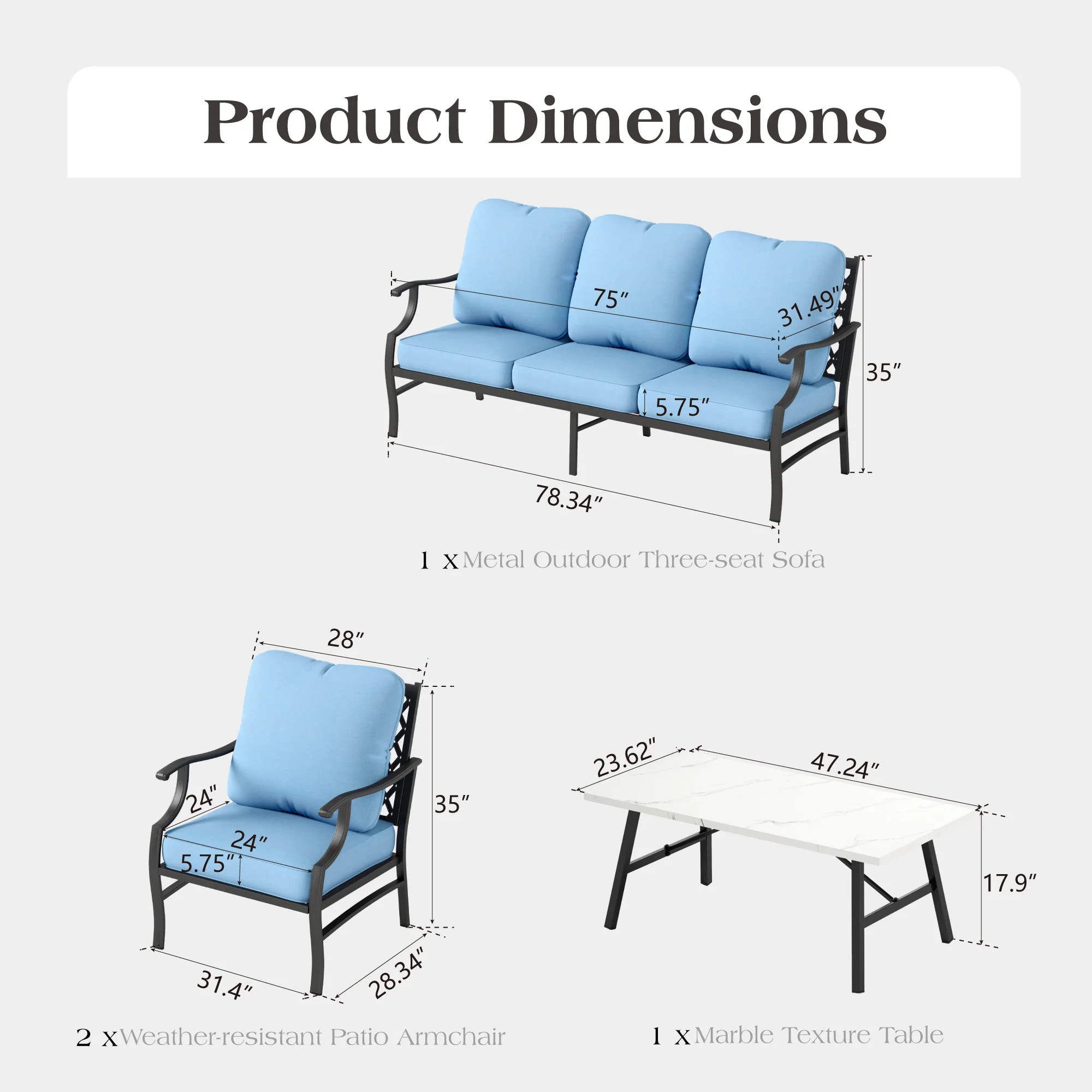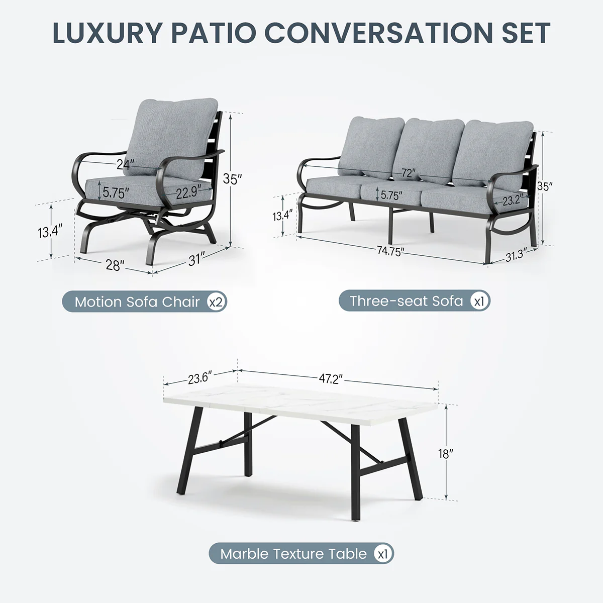 PHI VILLA 5-Seat Rattan-steel Luxury Padded Patio Conversation Set