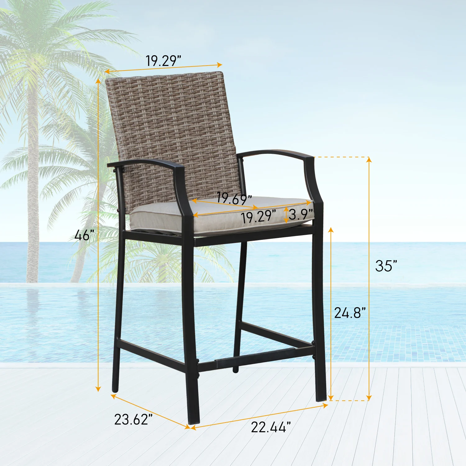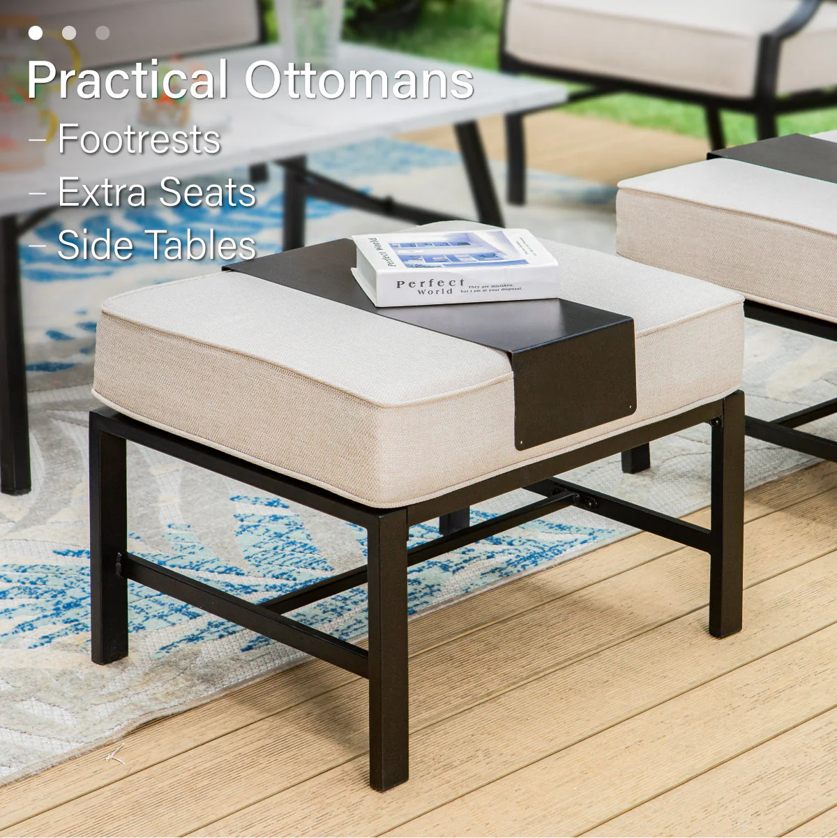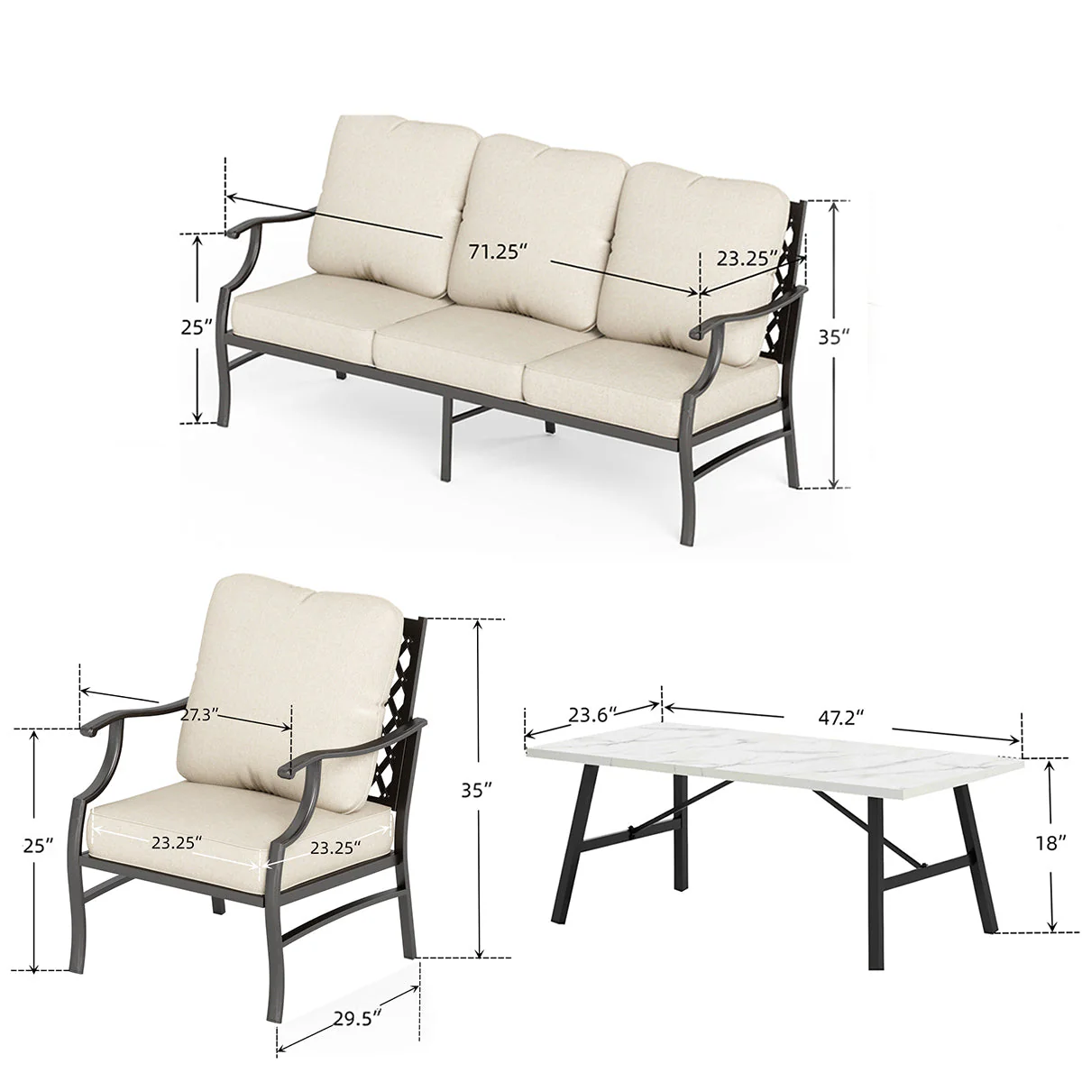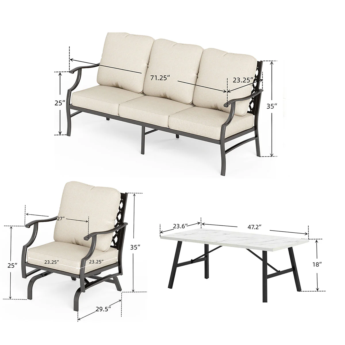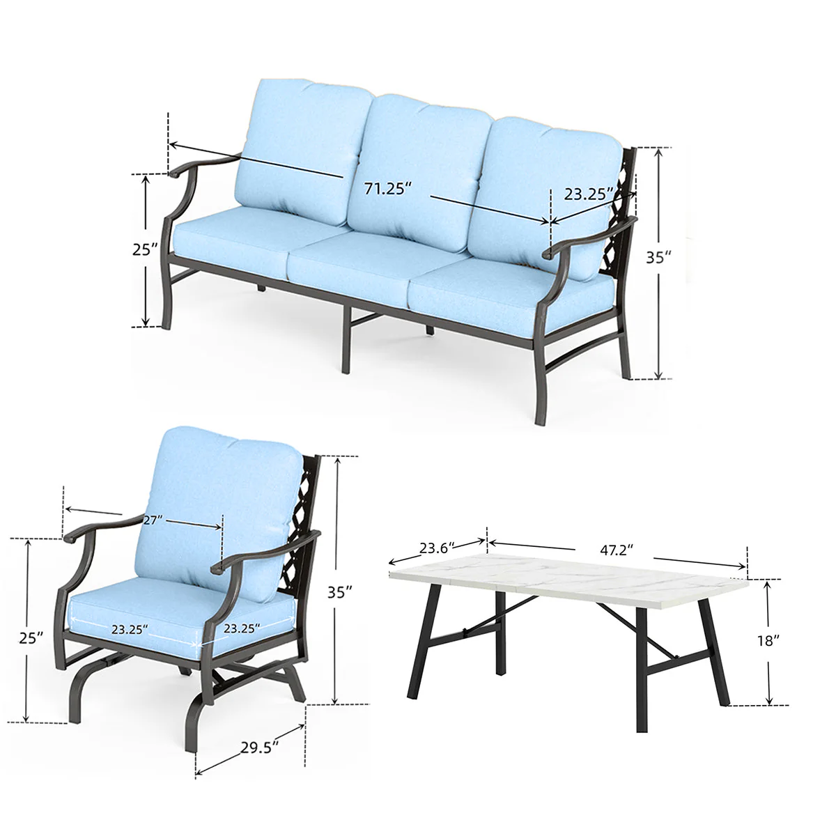 PHI VILLA 5-Seat Rattan-steel Luxury Padded Patio Conversation Set