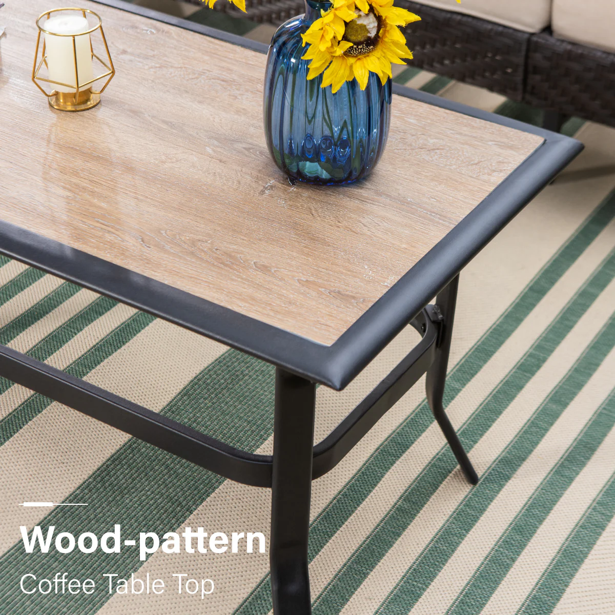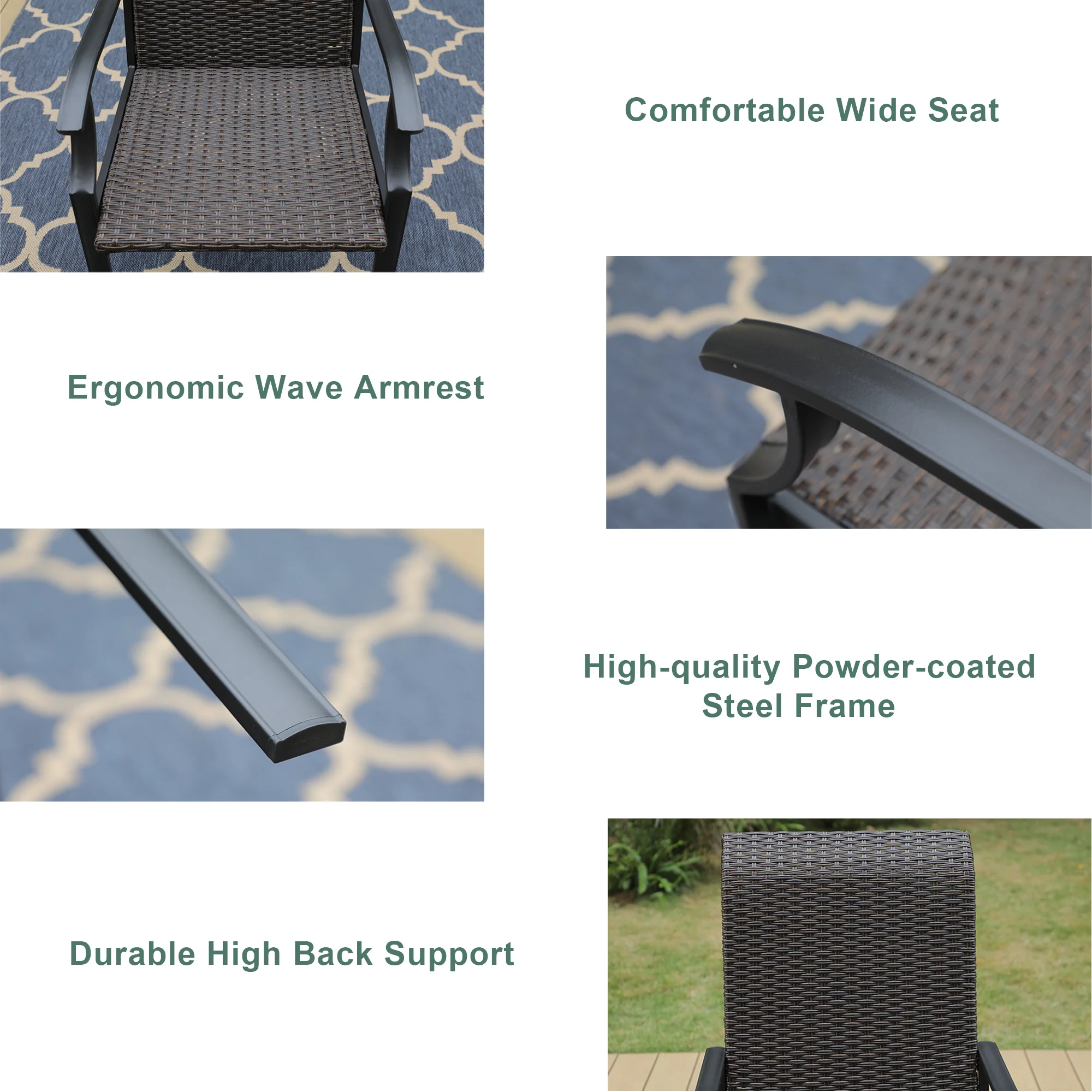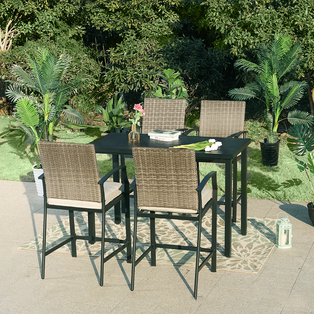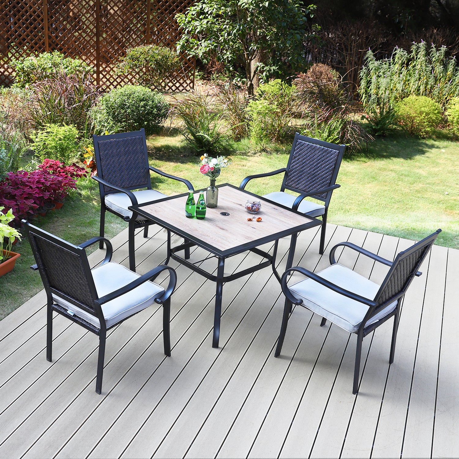 PHI VILLA 5-Piece Rattan Dining Chairs & Wood-look Square Table Patio Dining Set