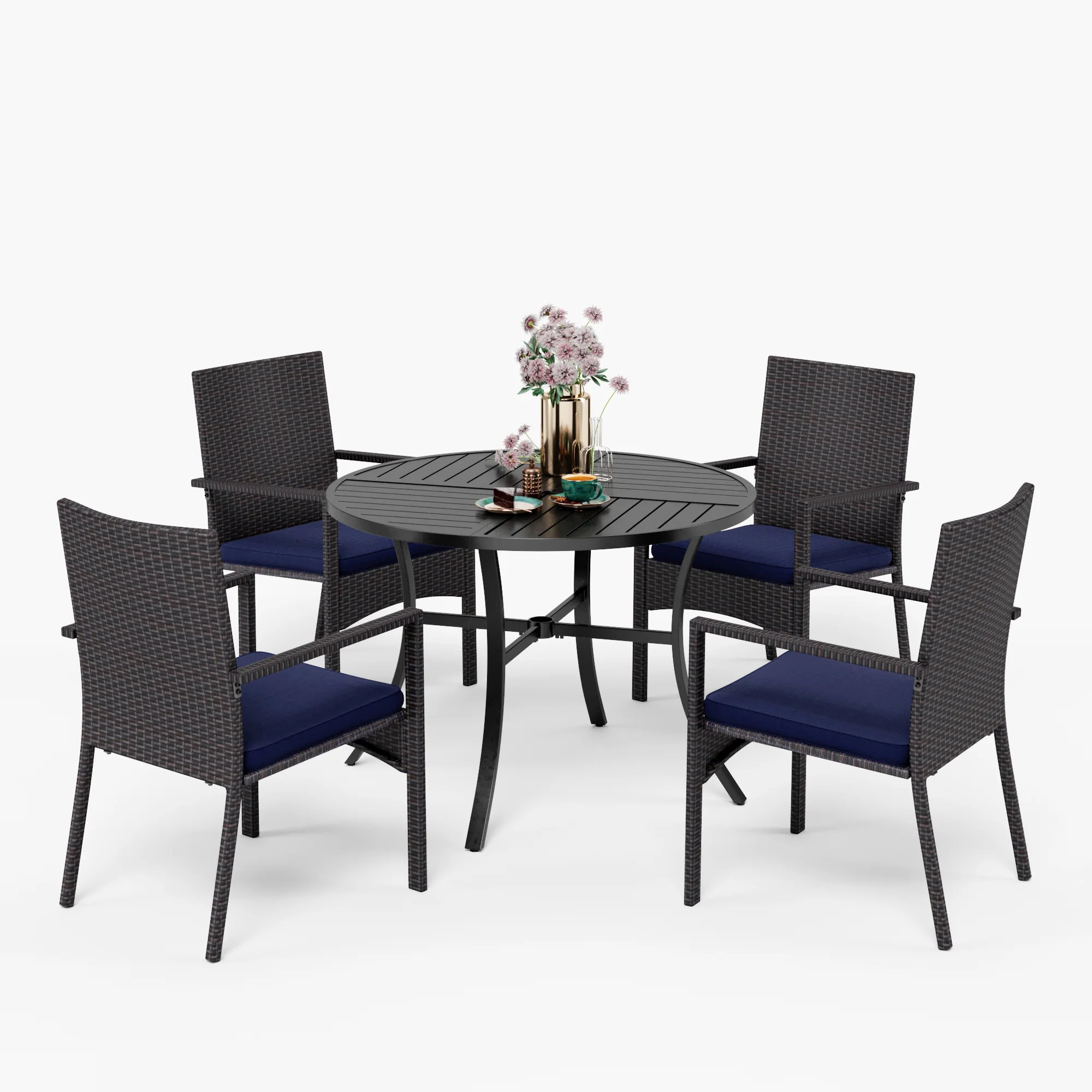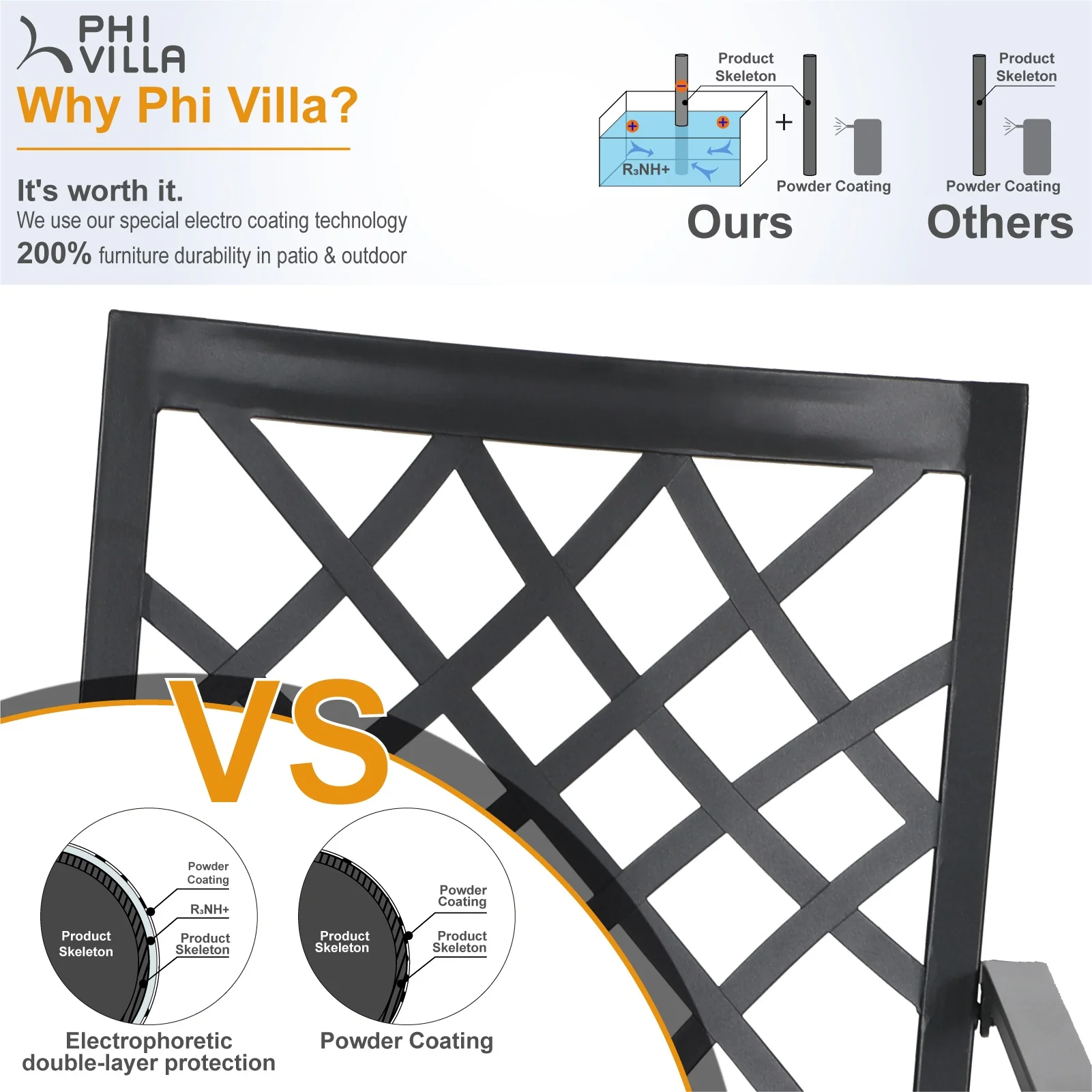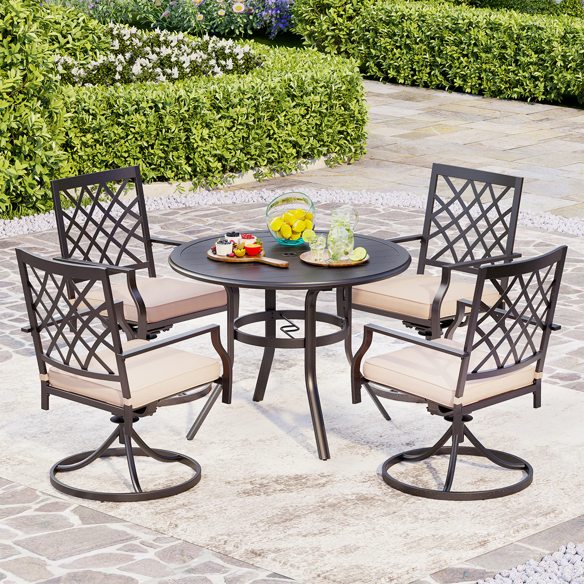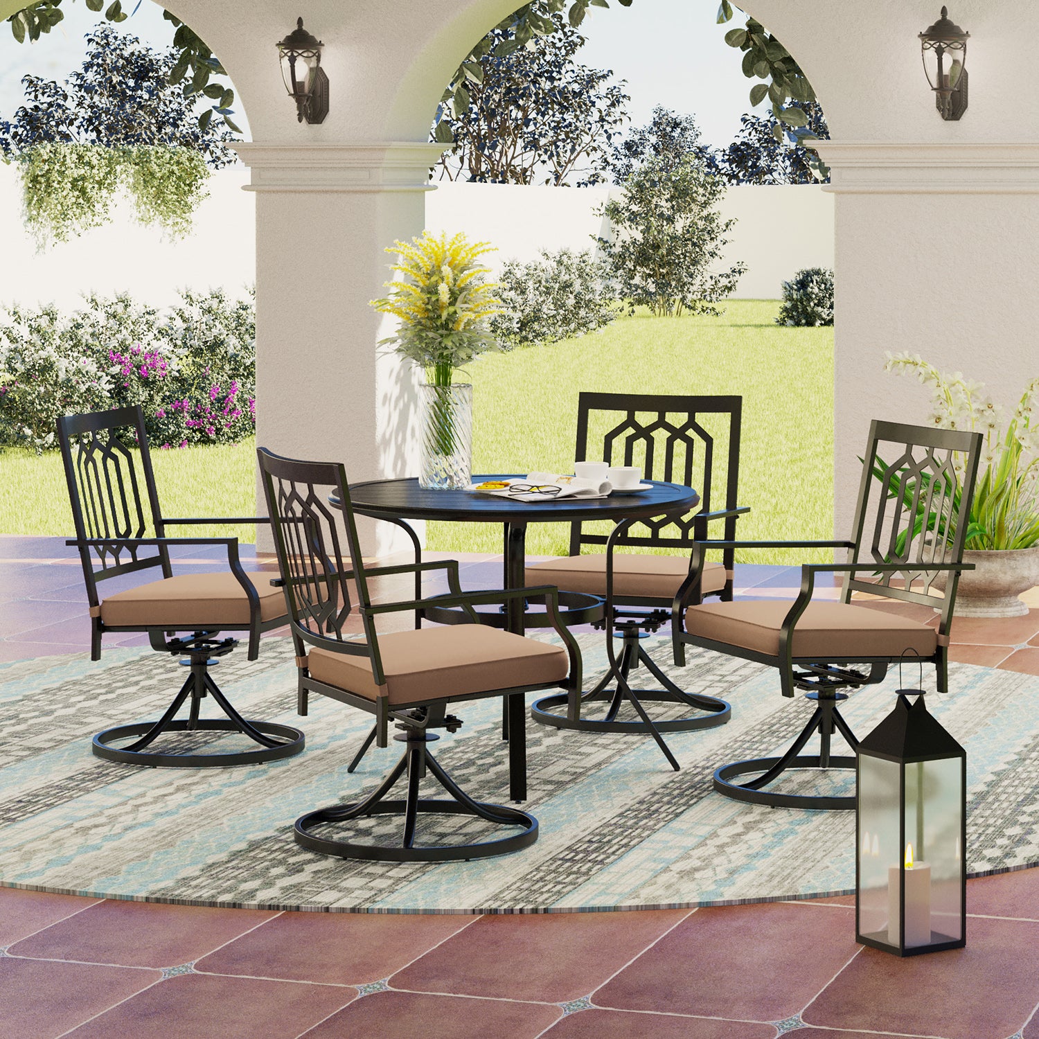 PHI VILLA 5-Piece Metal Round Table & 4 Swivel Chairs Outdoor Patio Dining Set