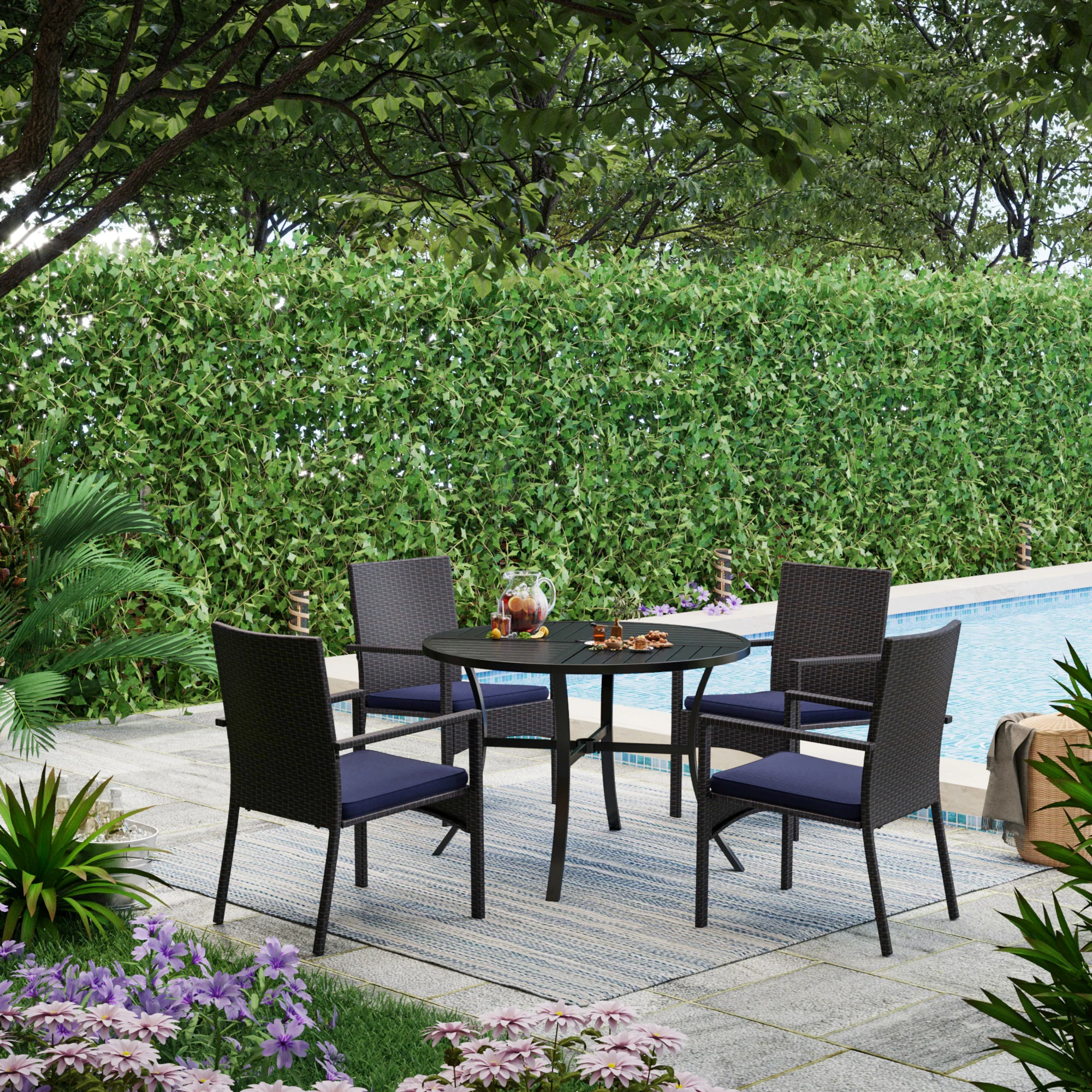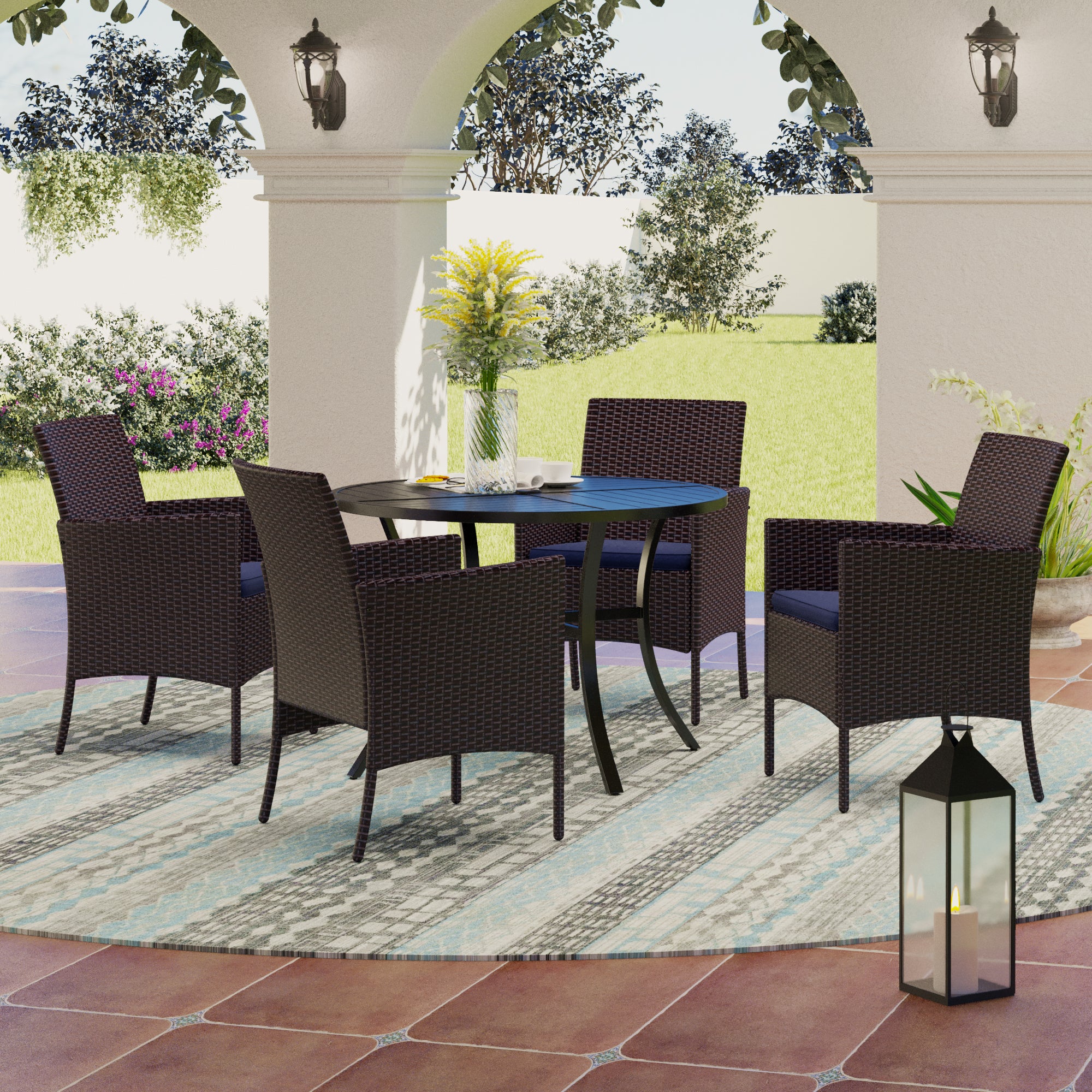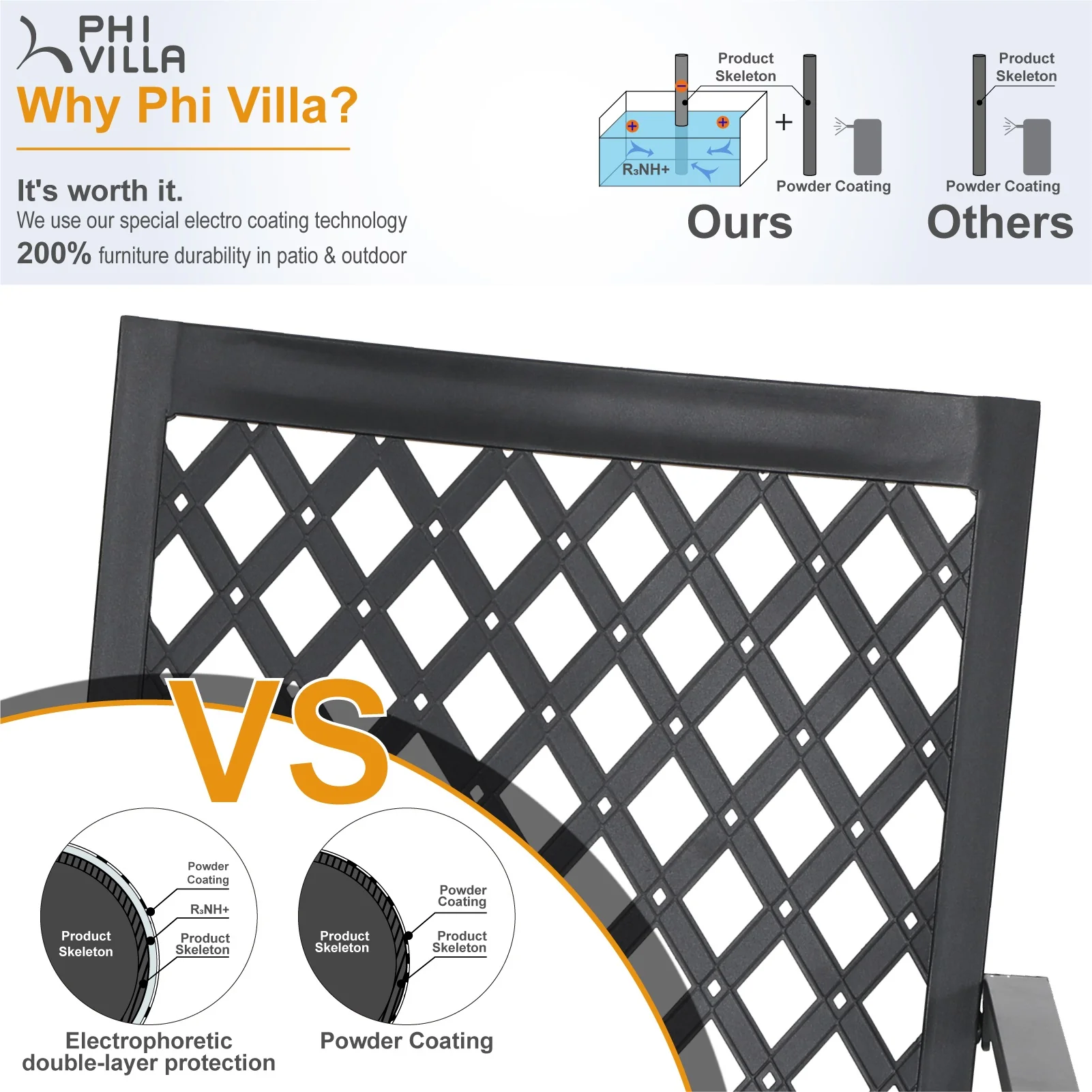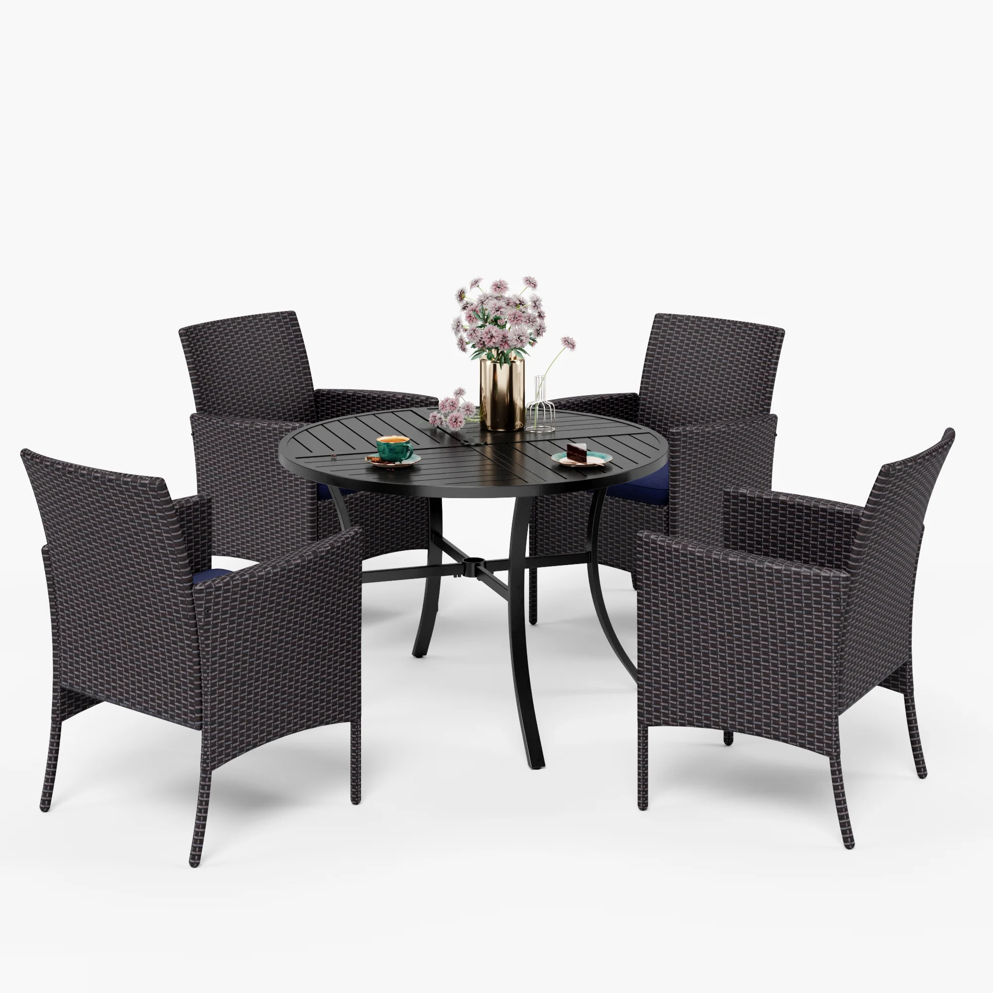PHI VILLA 5-Piece Metal Round Table & 4 Swivel Chairs Outdoor Patio Dining Set