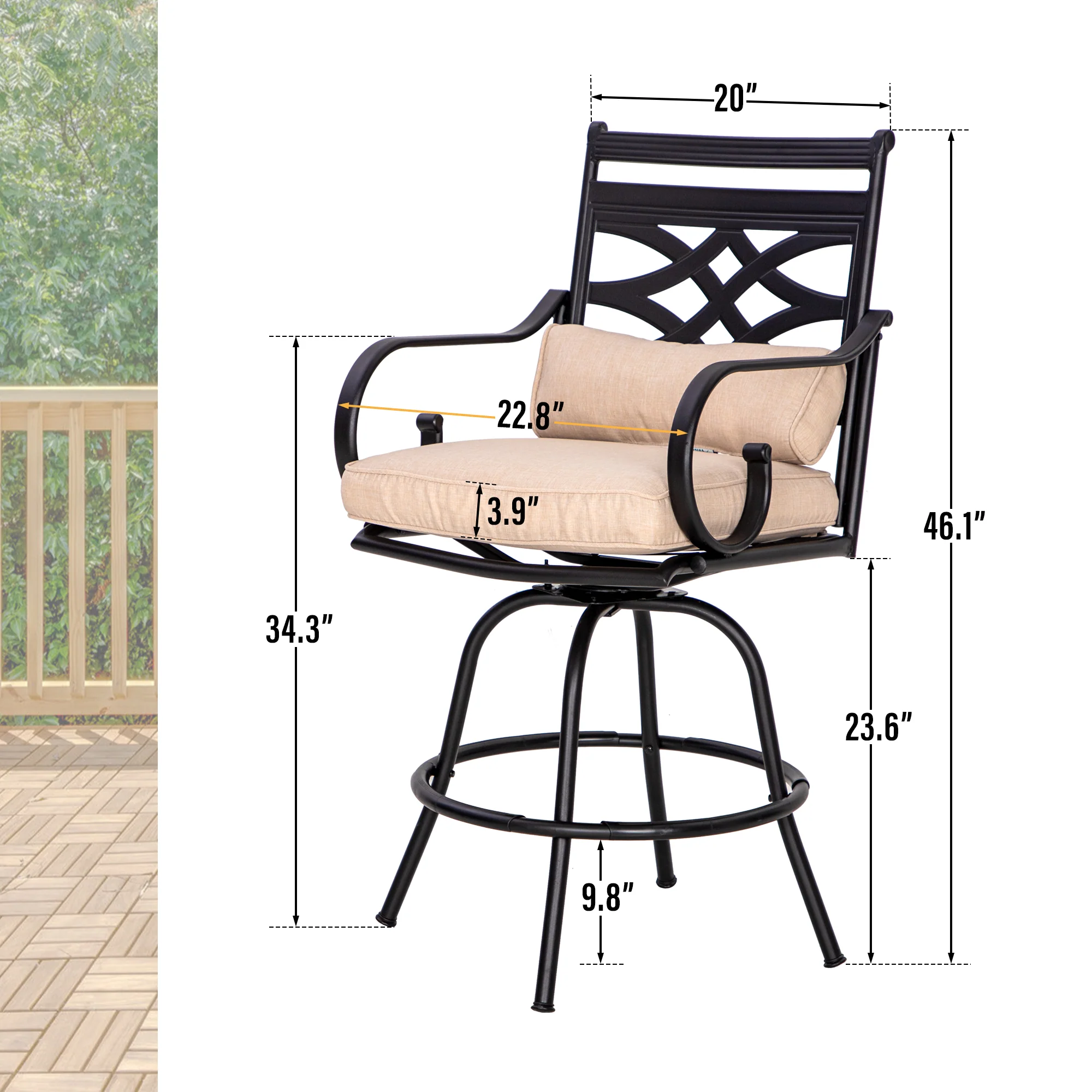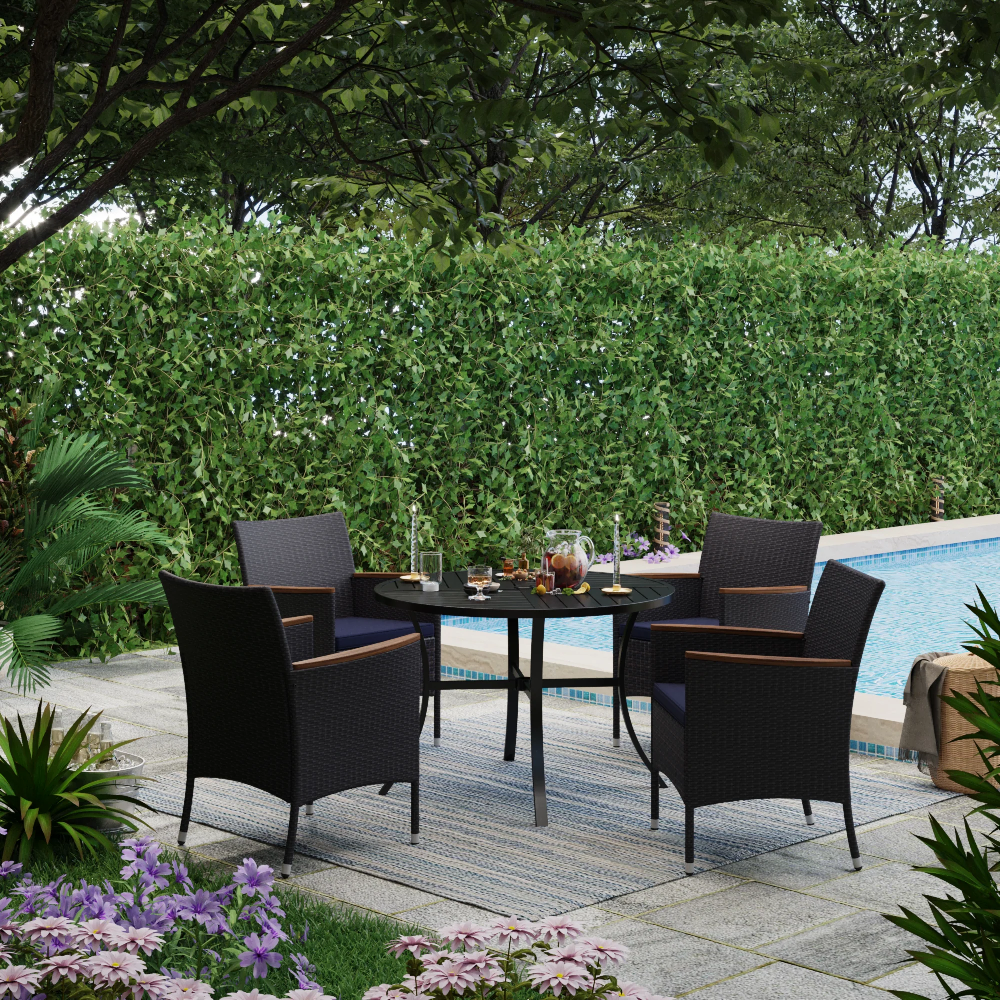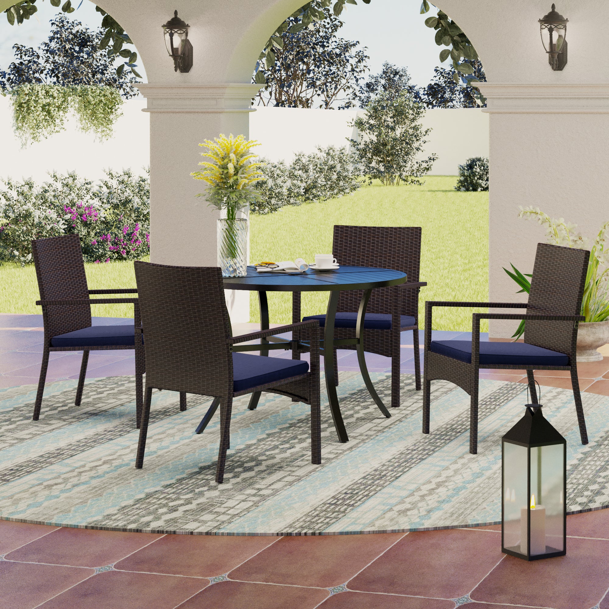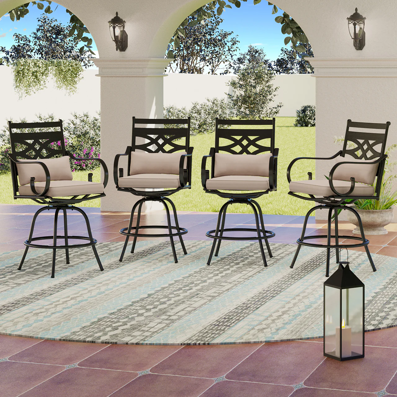 PHI VILLA 5-Piece Metal Round Table & 4 Swivel Chairs Outdoor Patio Dining Set