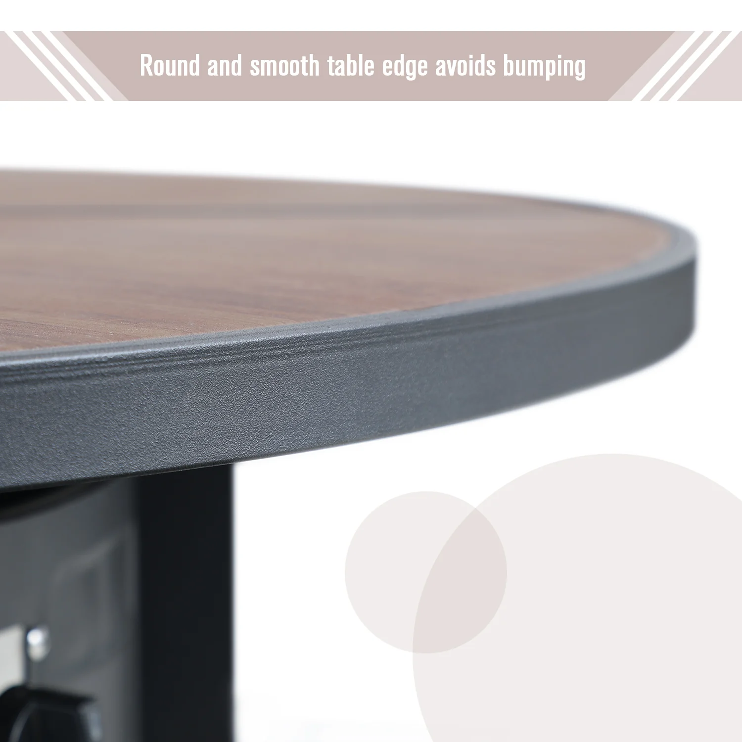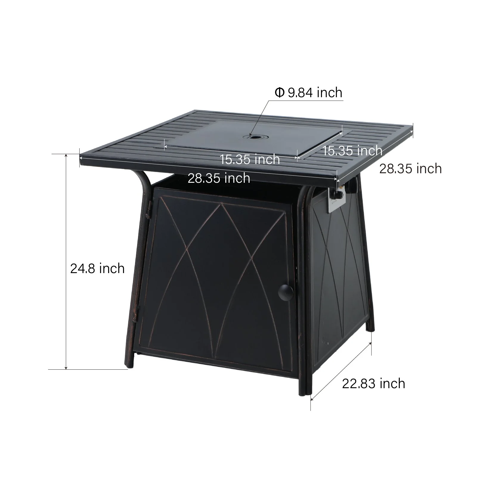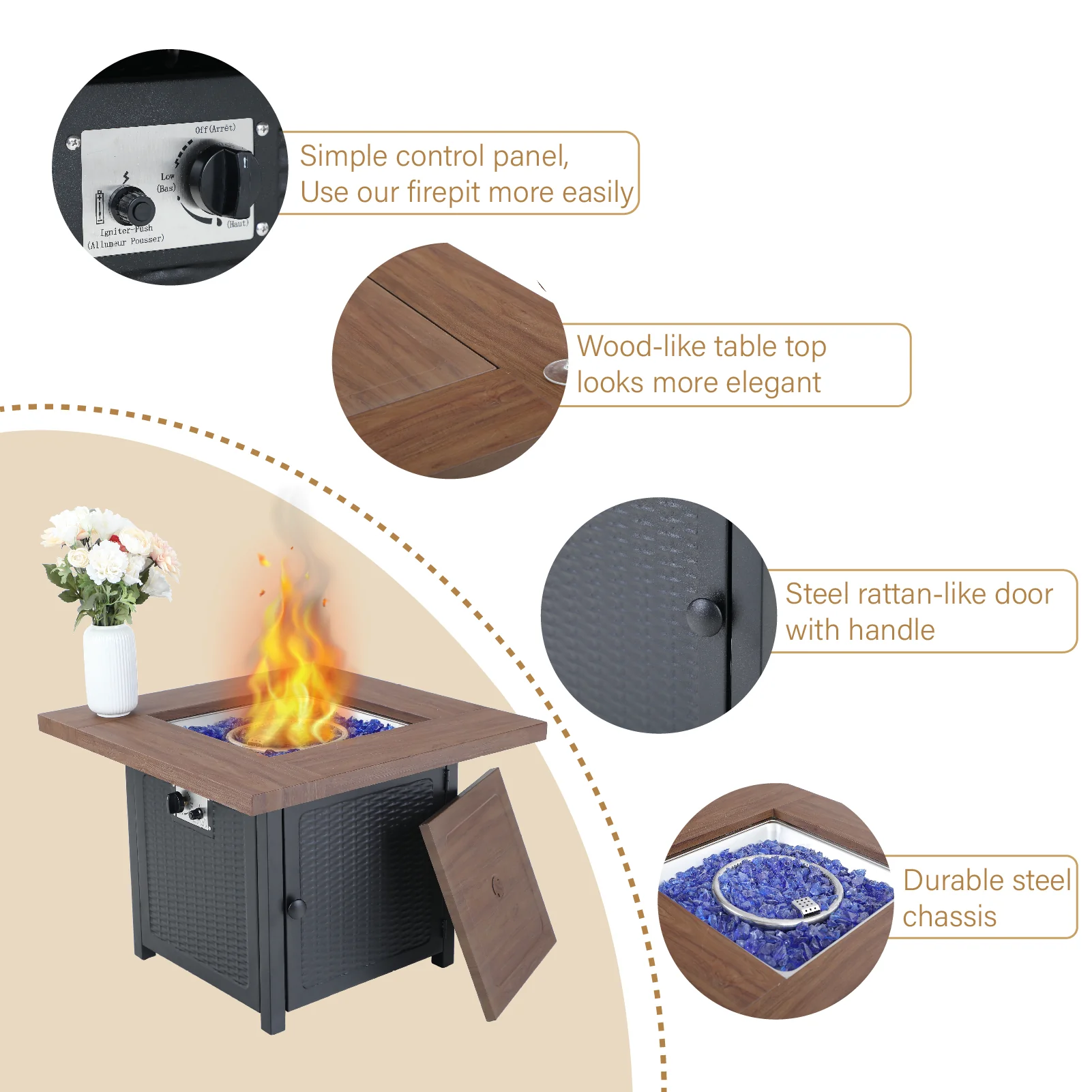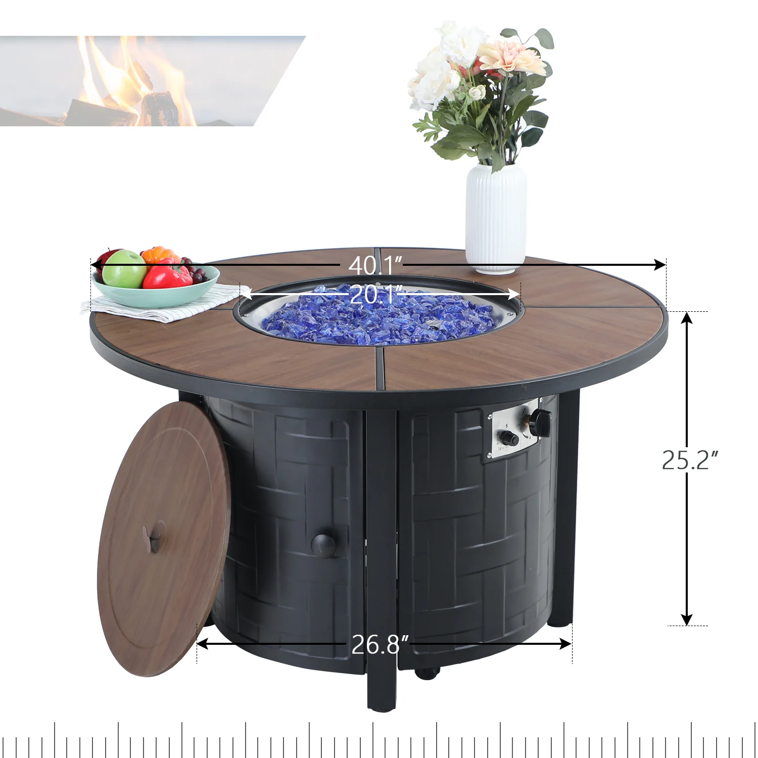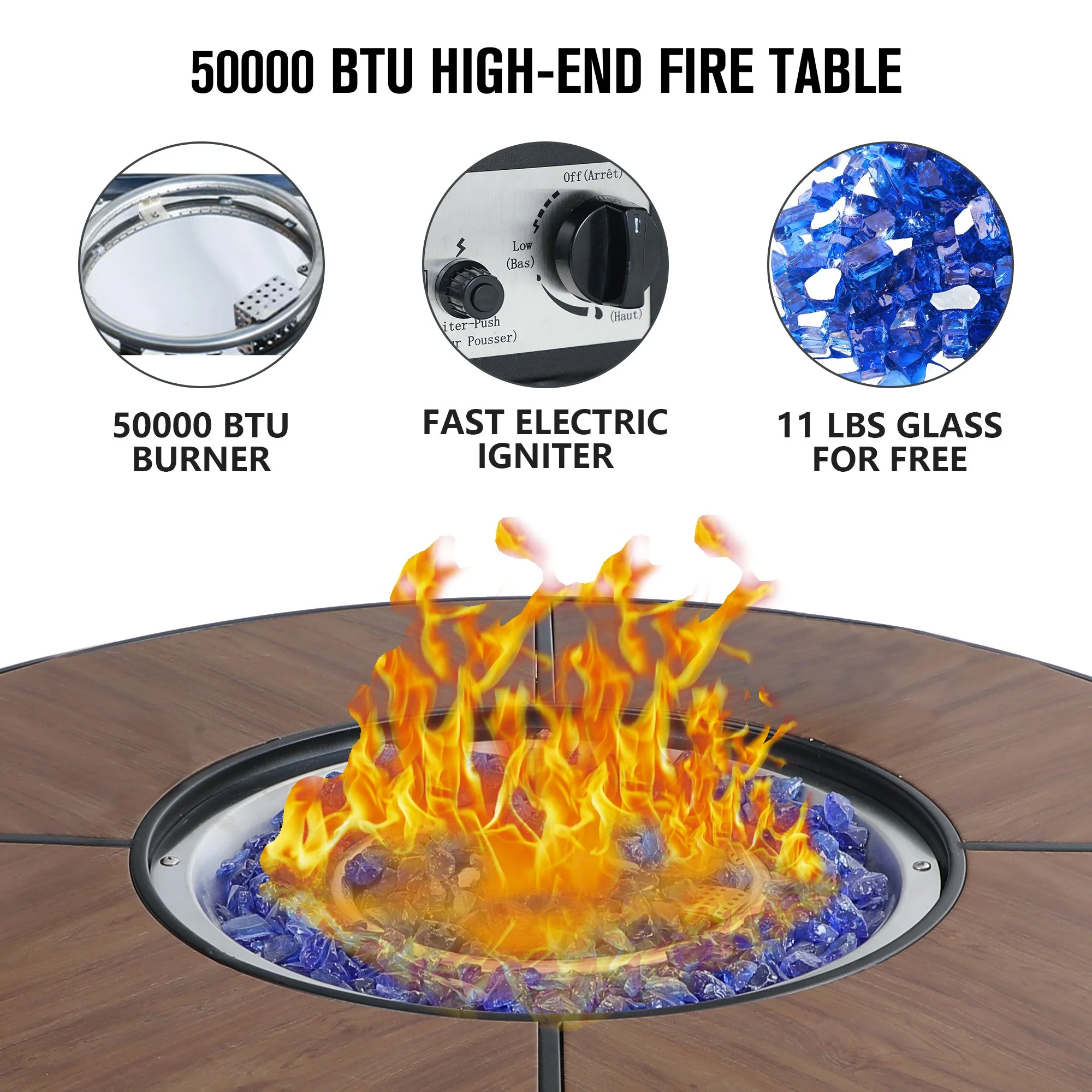 PHI VILLA 5-Piece 34" Wood-look Gas Fire Pit Table & Simple Aluminum Textilene Fixed Chairs Patio Dining Set