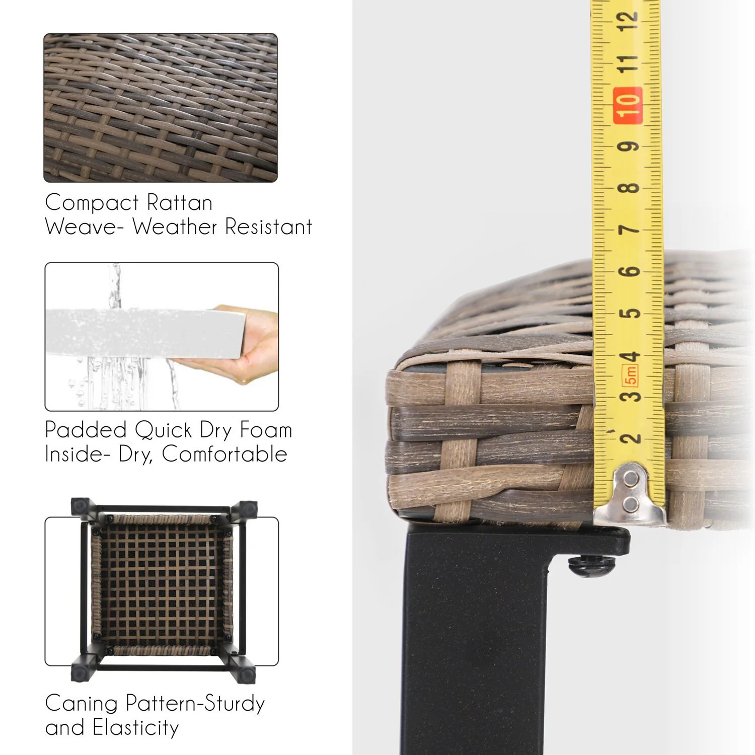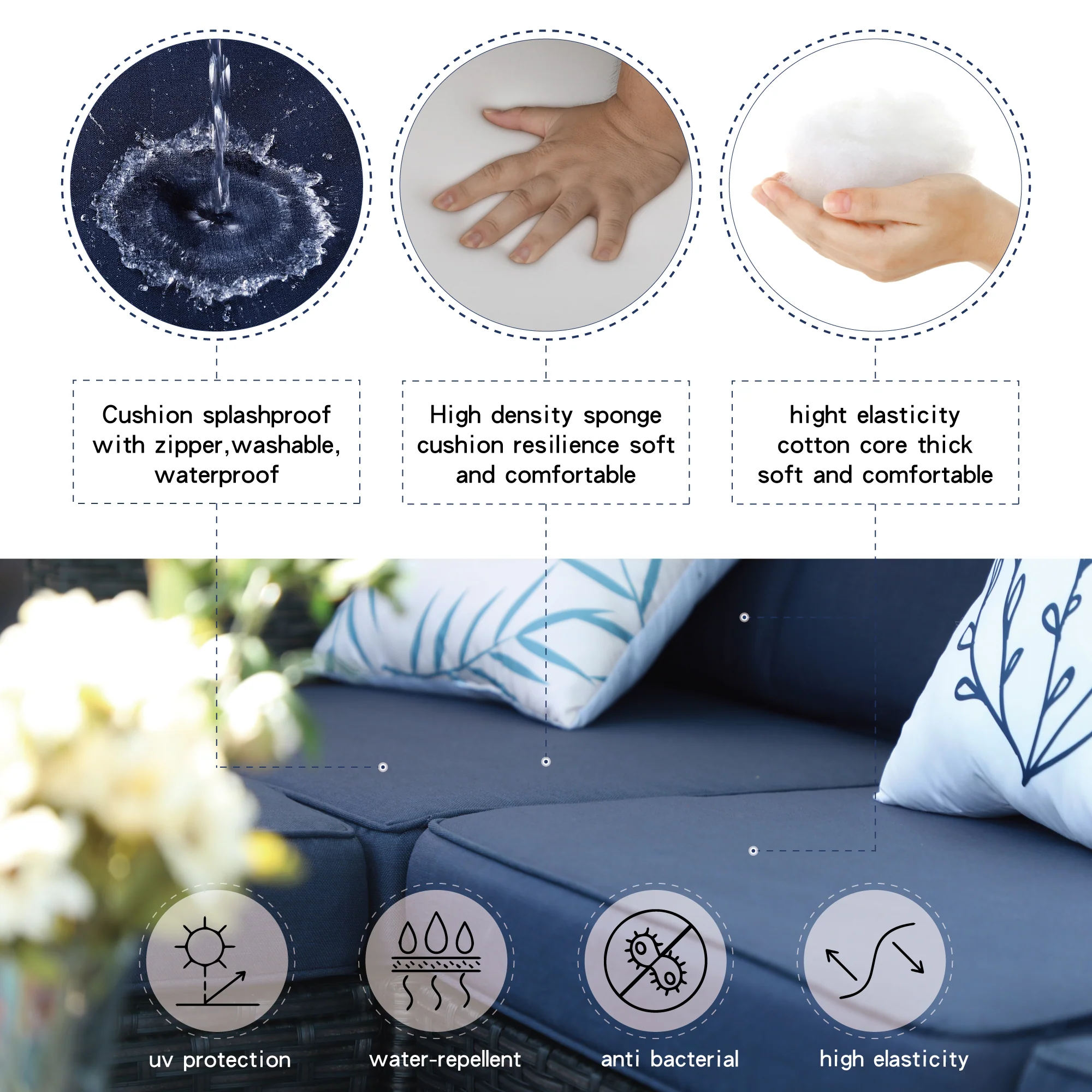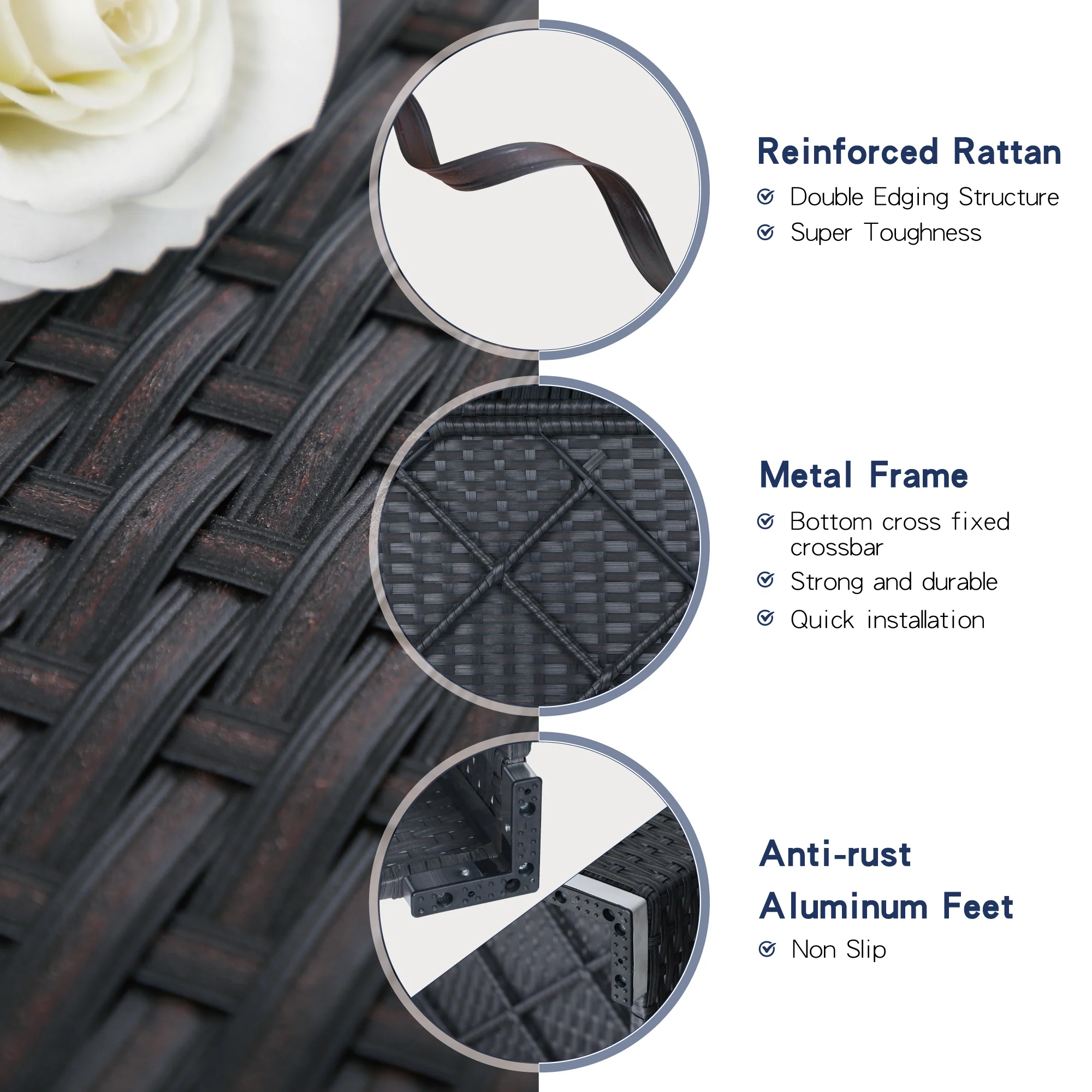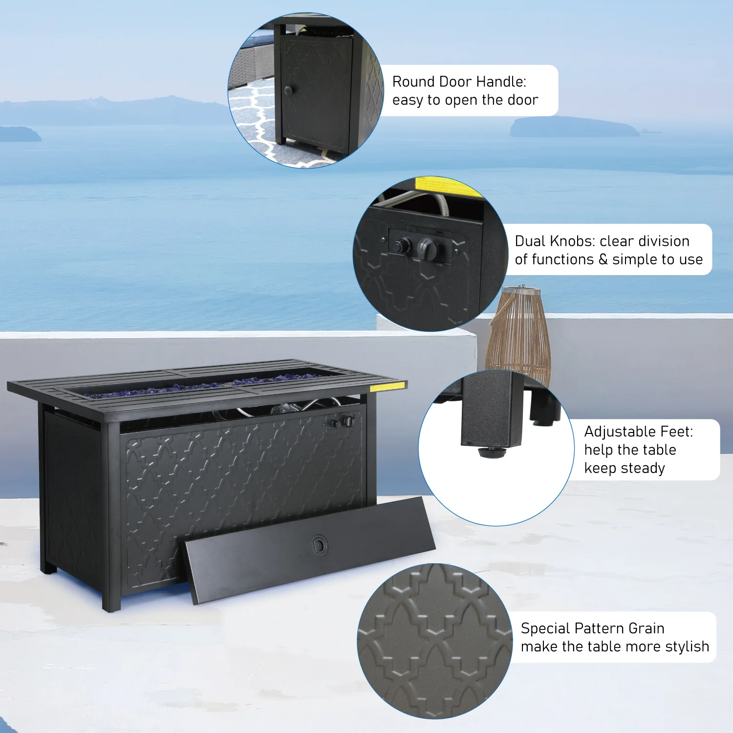 PHI VILLA 5-Piece Gas Fire Pit Table 45"×23“ 50,000 BTU & Rattan Wicker Sectional Sofa Set