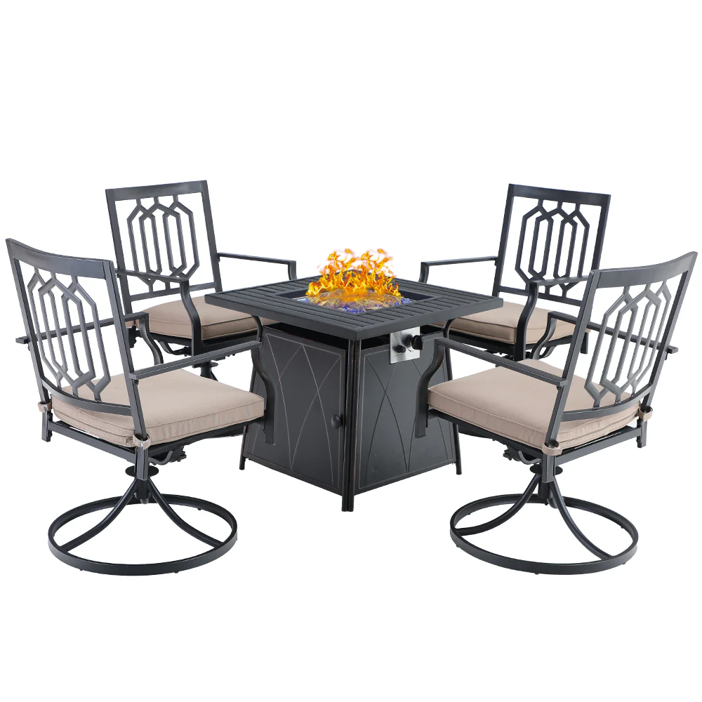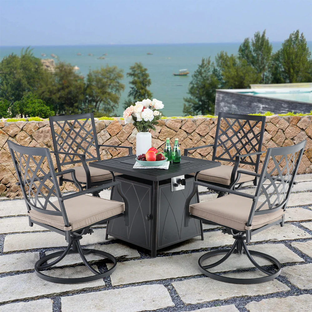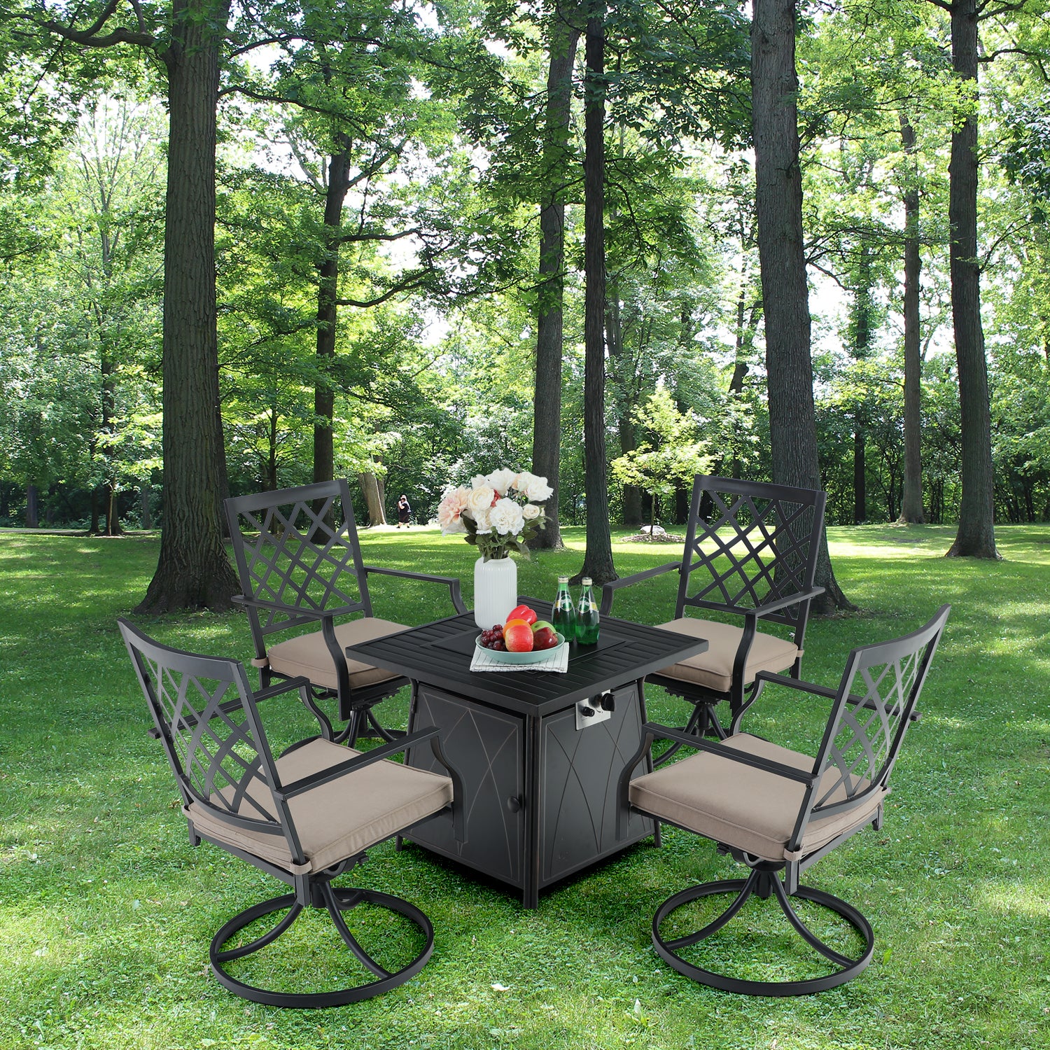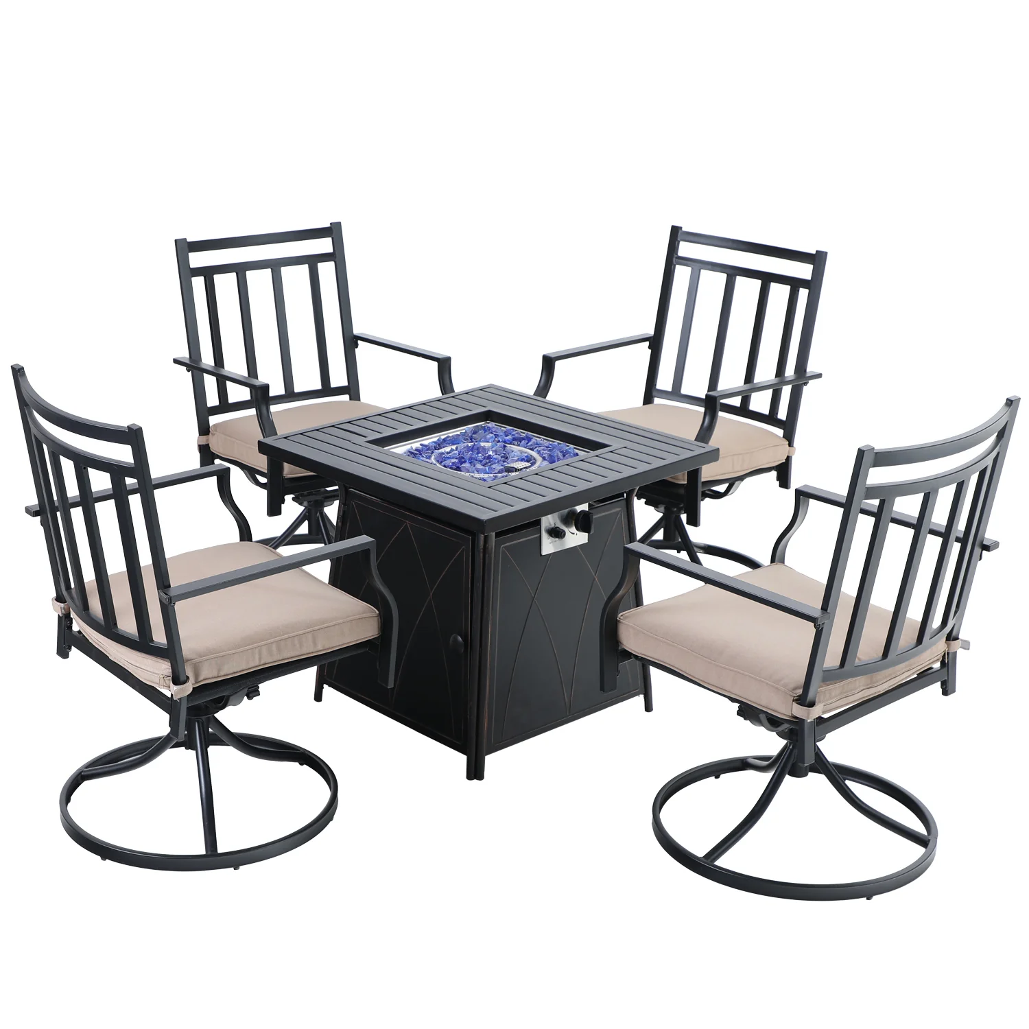PHI VILLA 5-Piece Gas Fire Pit Table Outdoor Patio Dining Set with 4 Swivel Cushioned Chairs