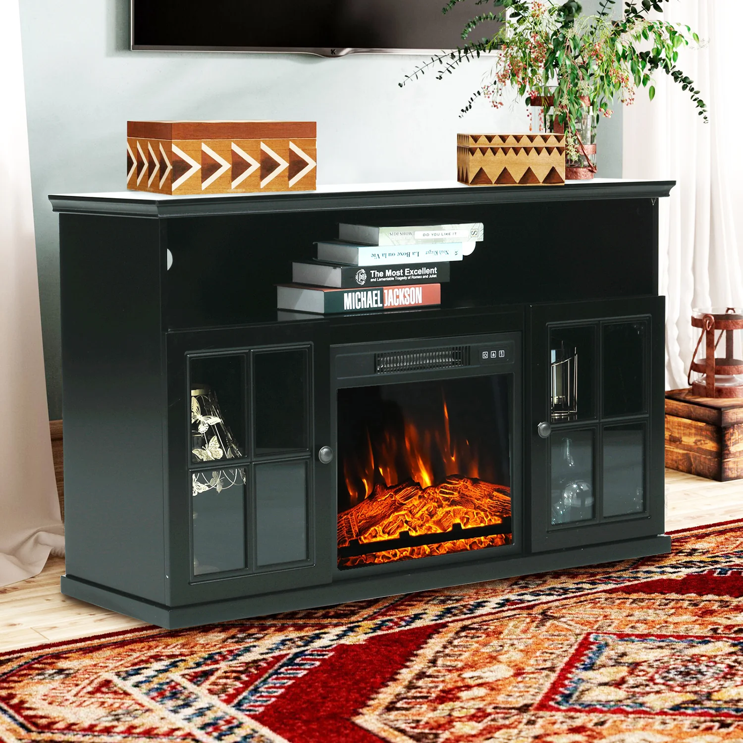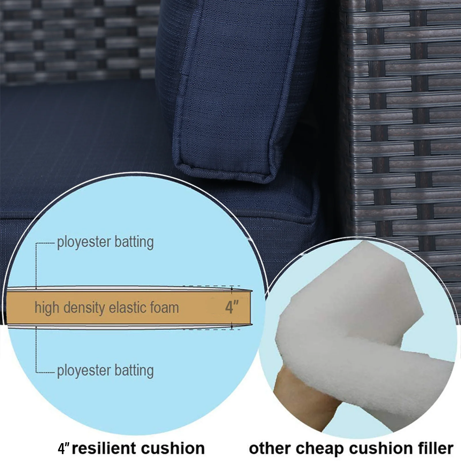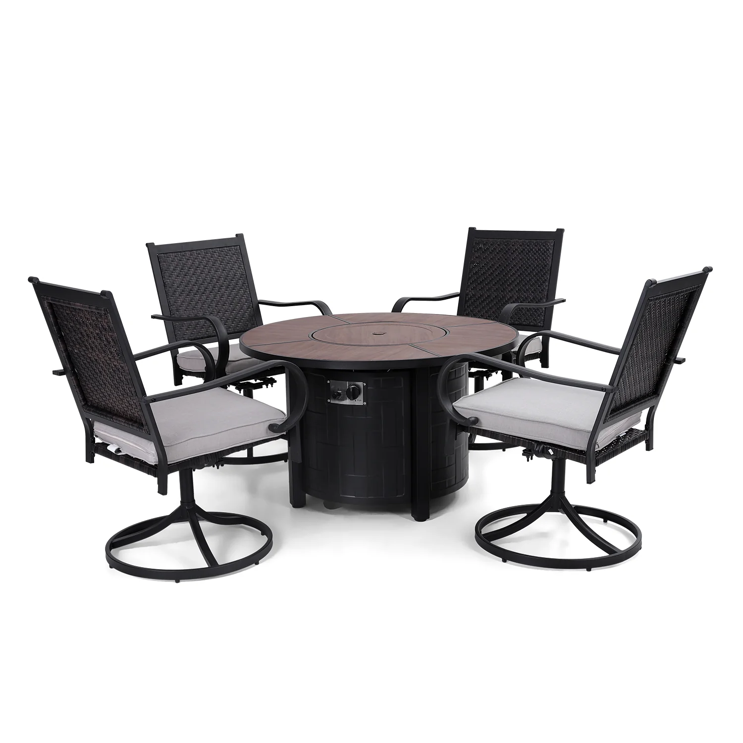 PHI VILLA 5-Piece Fire Pit Table Patio Dining Set with Rattan High Back Swivel Chairs