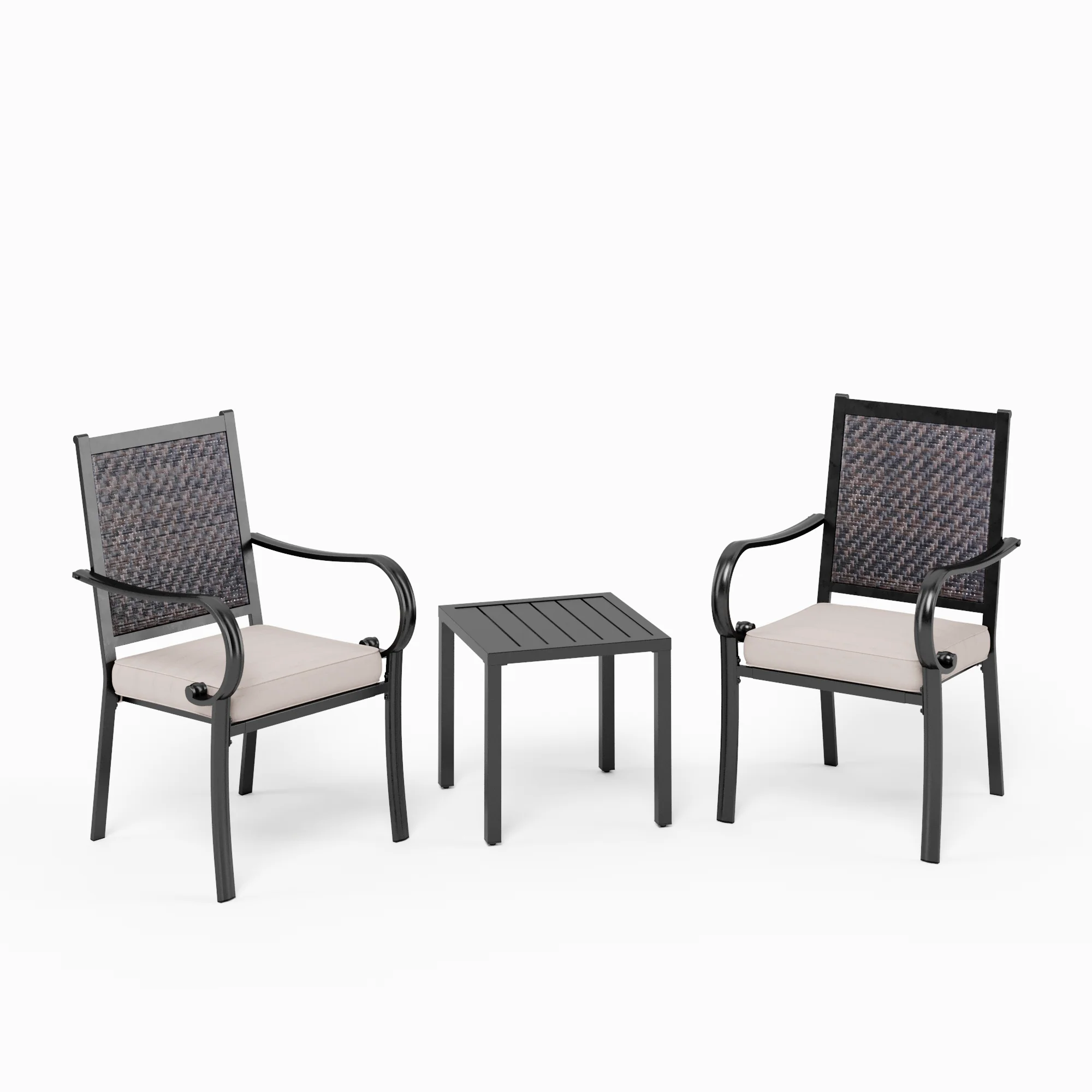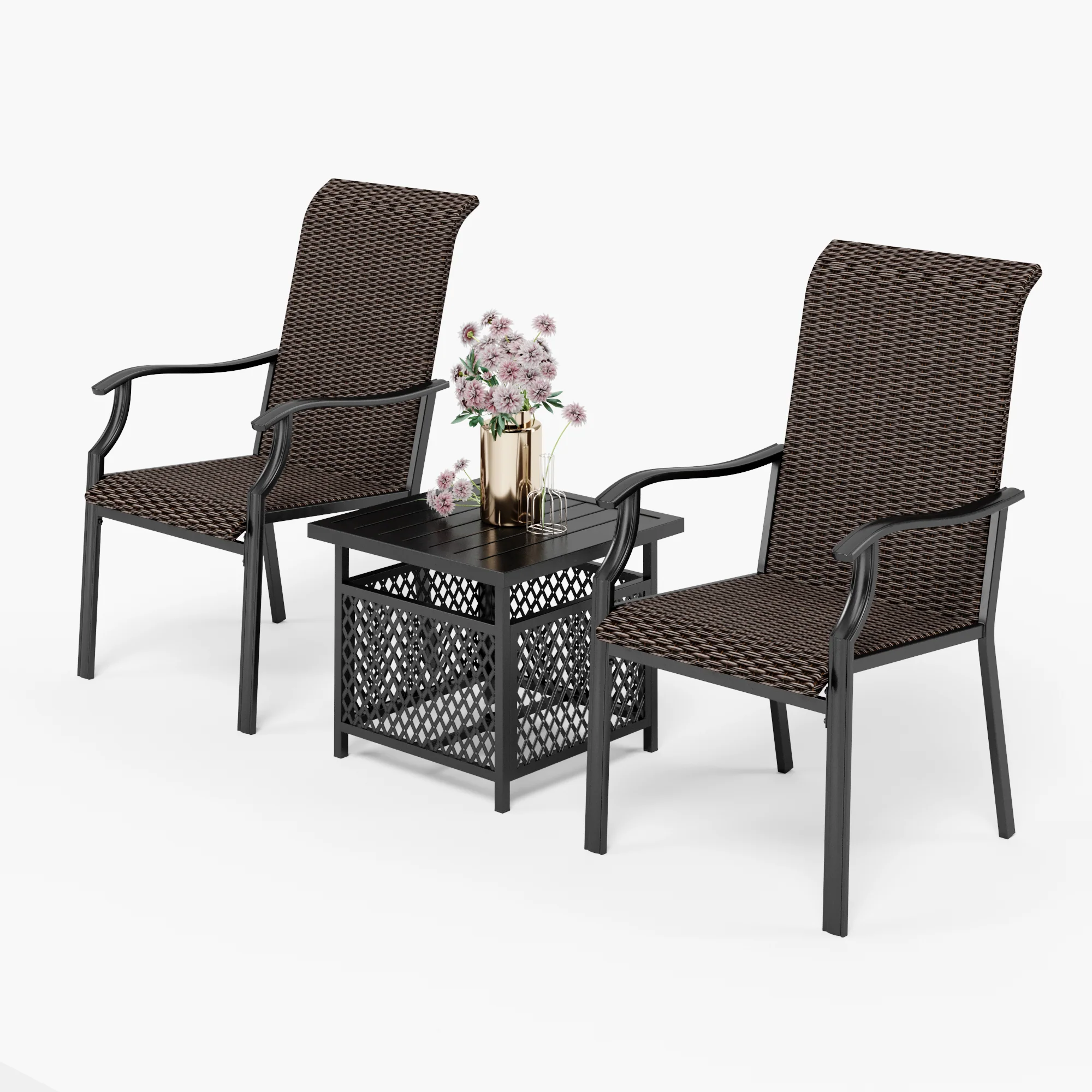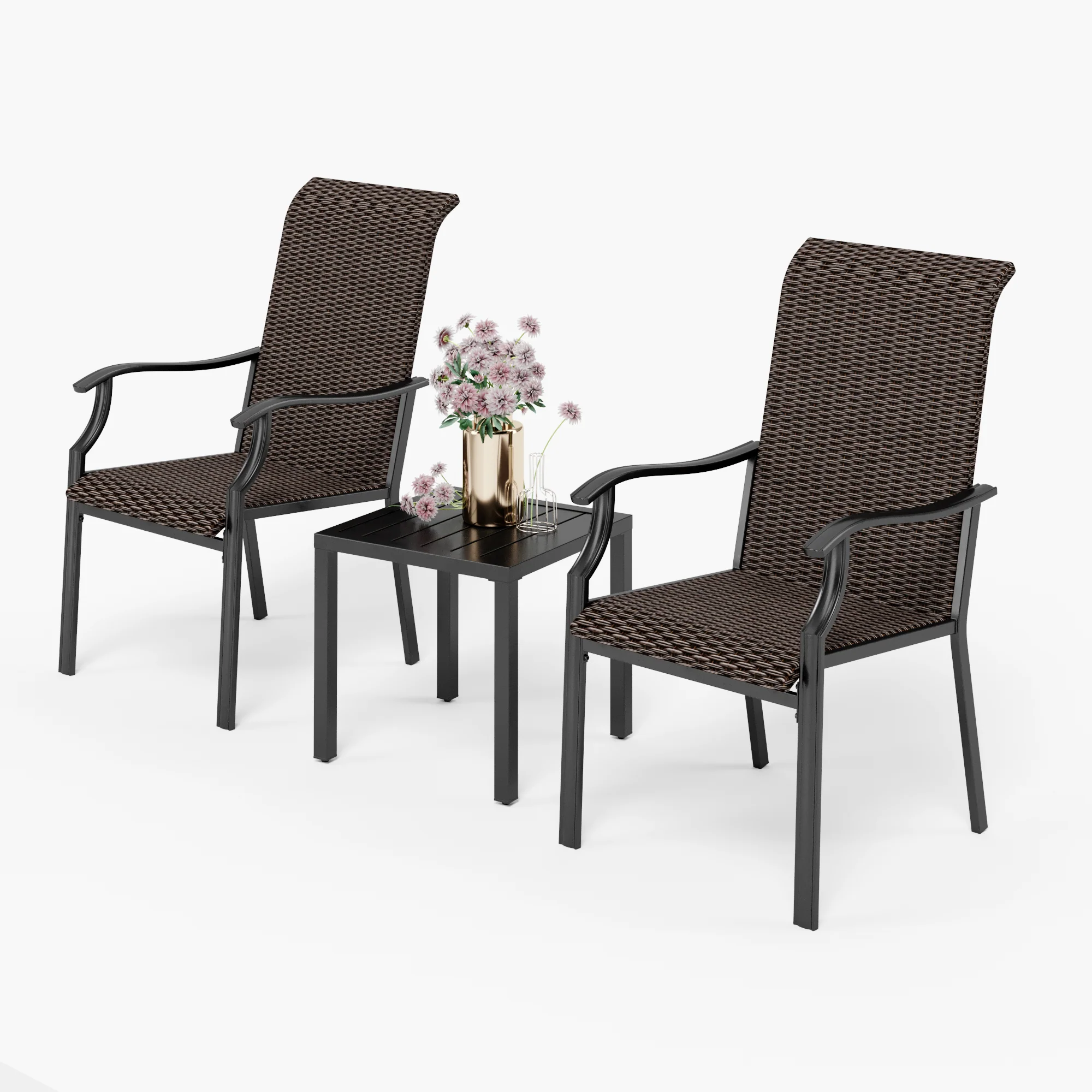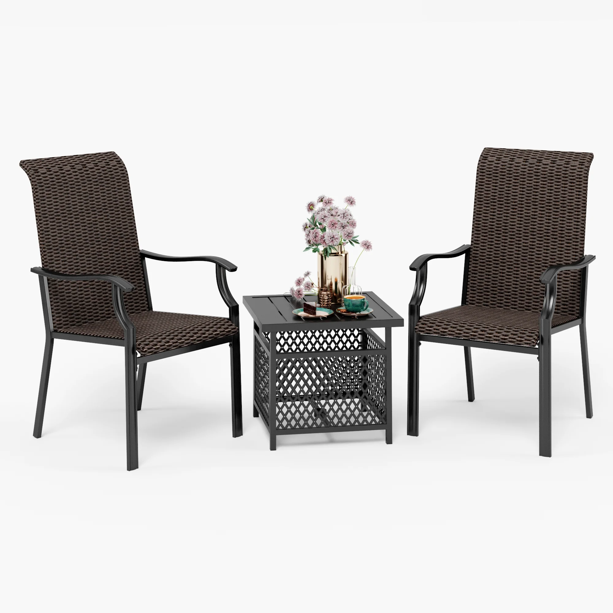 PHI VILLA 3-Piece Rattan Dining Chairs & Small Square Side Table Patio Bistro Set