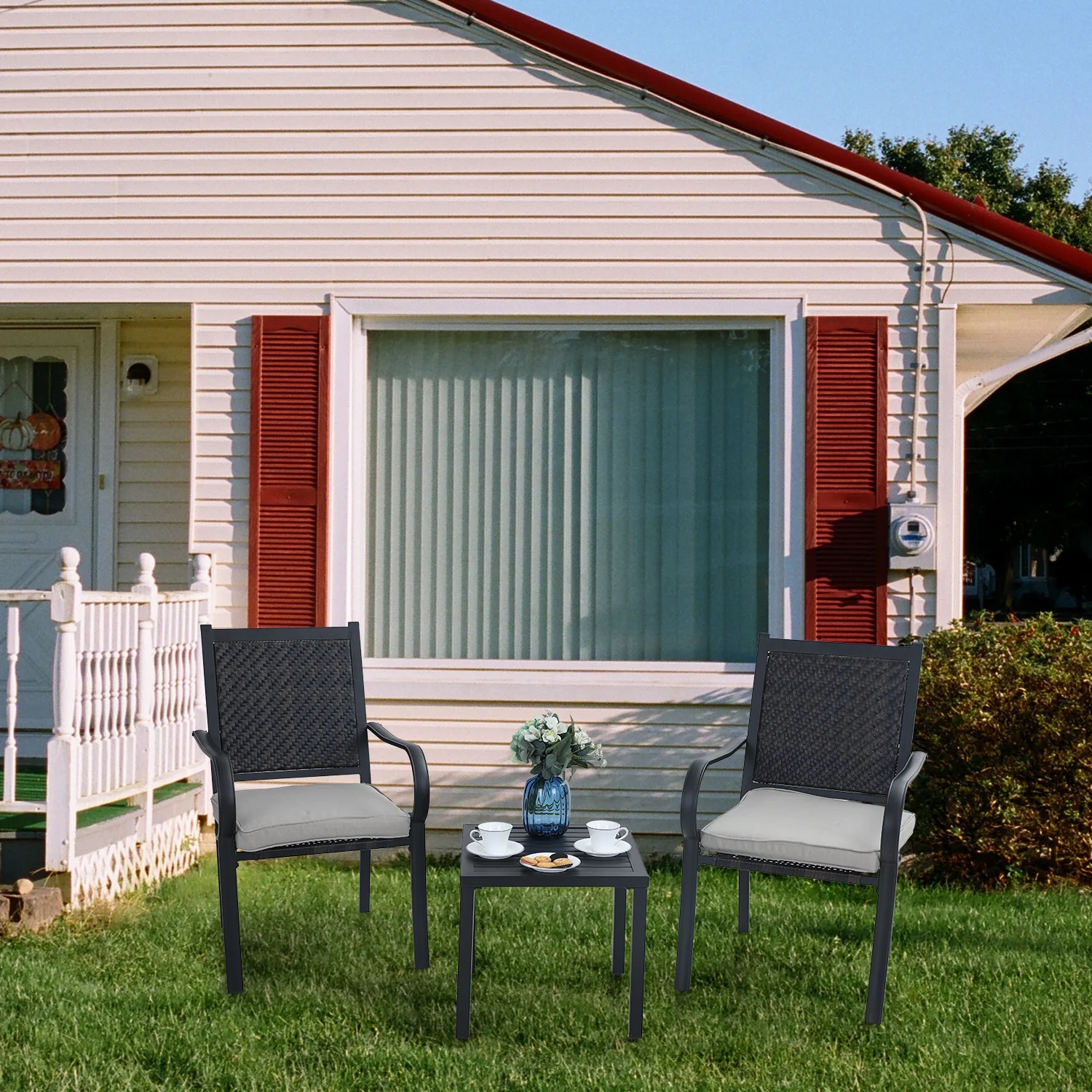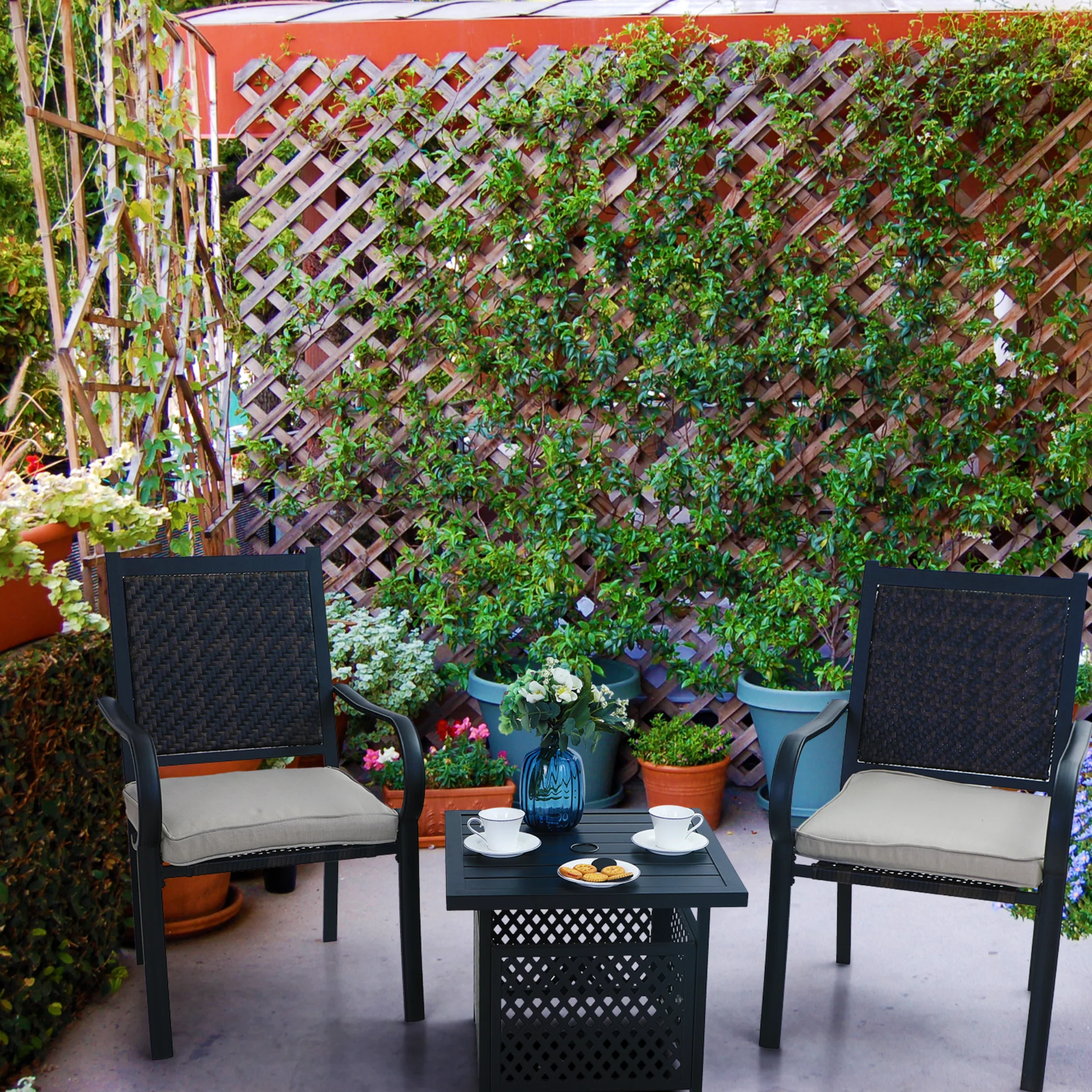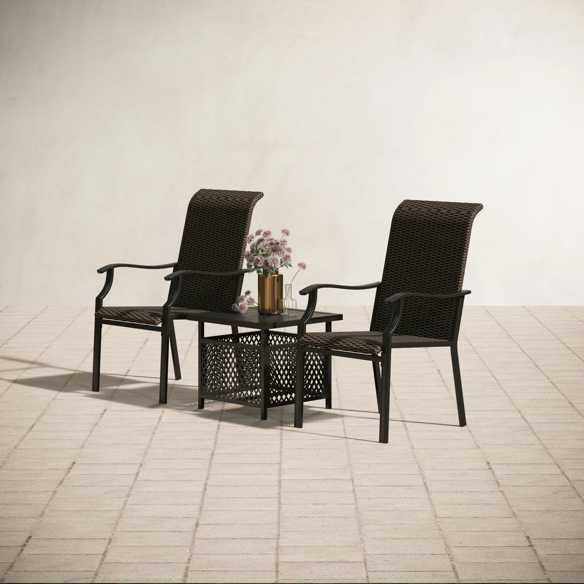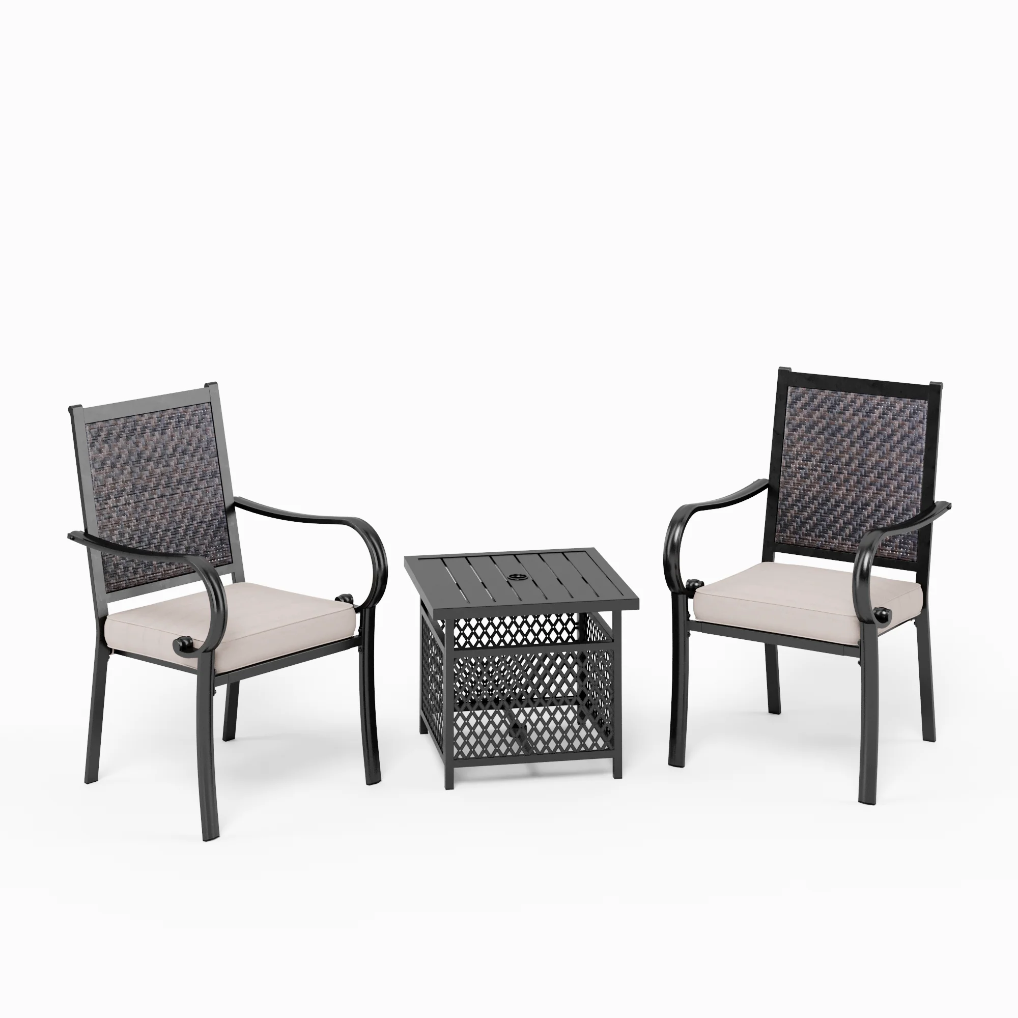 PHI VILLA 3-Piece Rattan Dining Chairs & Small Square Side Table Patio Bistro Set