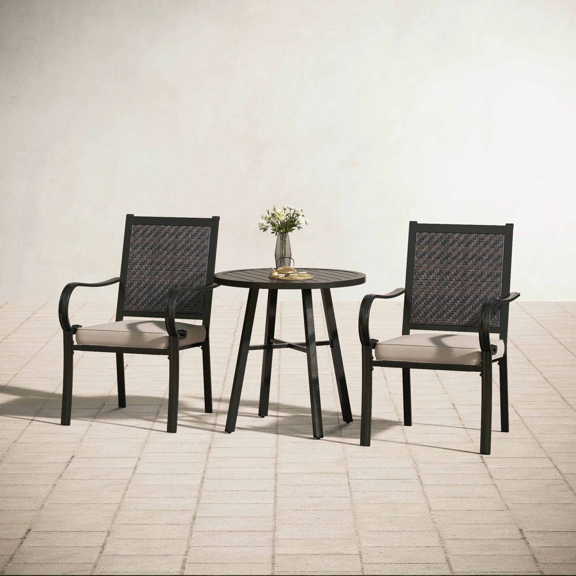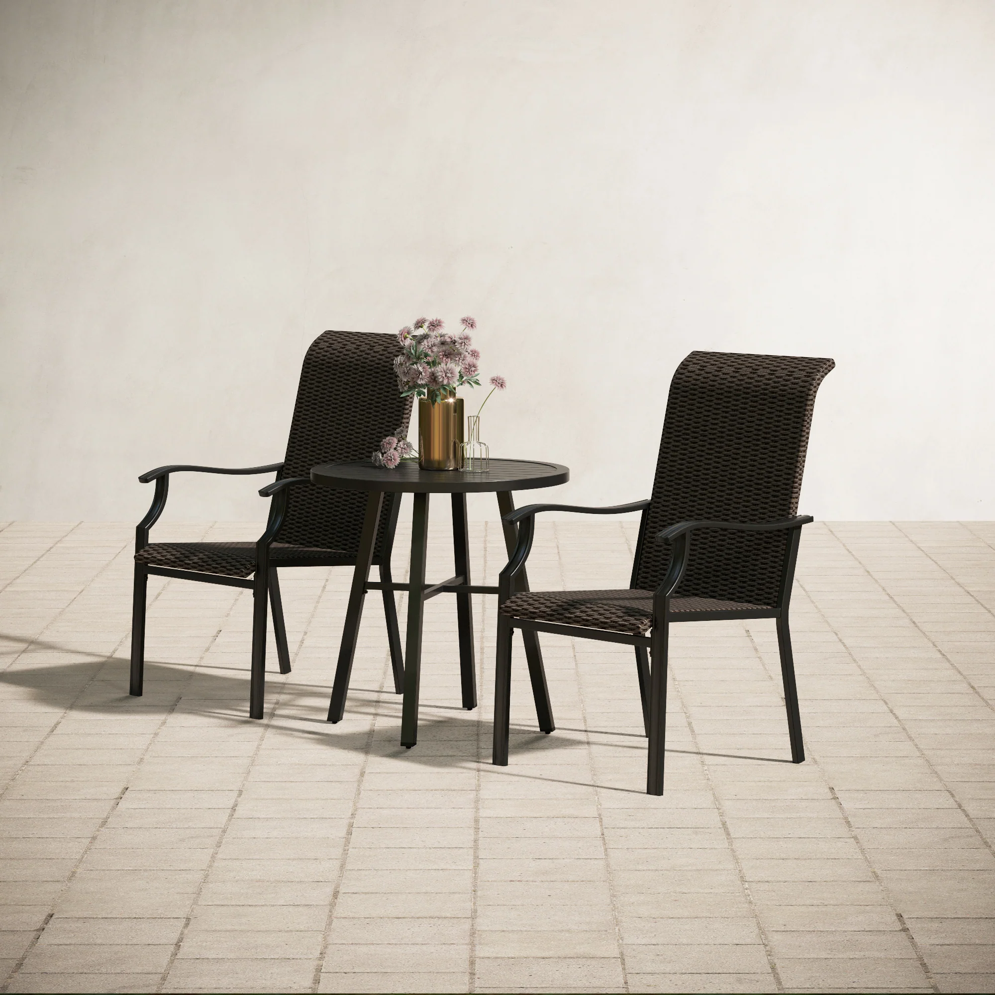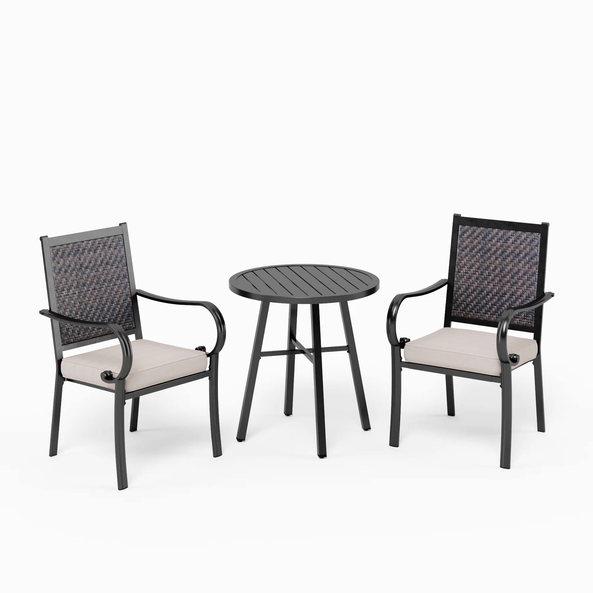 PHI VILLA 3-Piece Rattan Dining Chairs & Small Round Table Patio Bistro Set