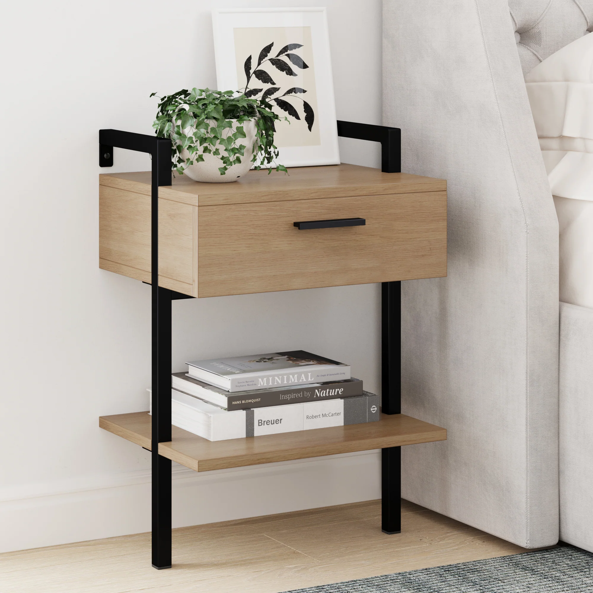 Wood Wall Mount Drawer Nightstand Light Oak