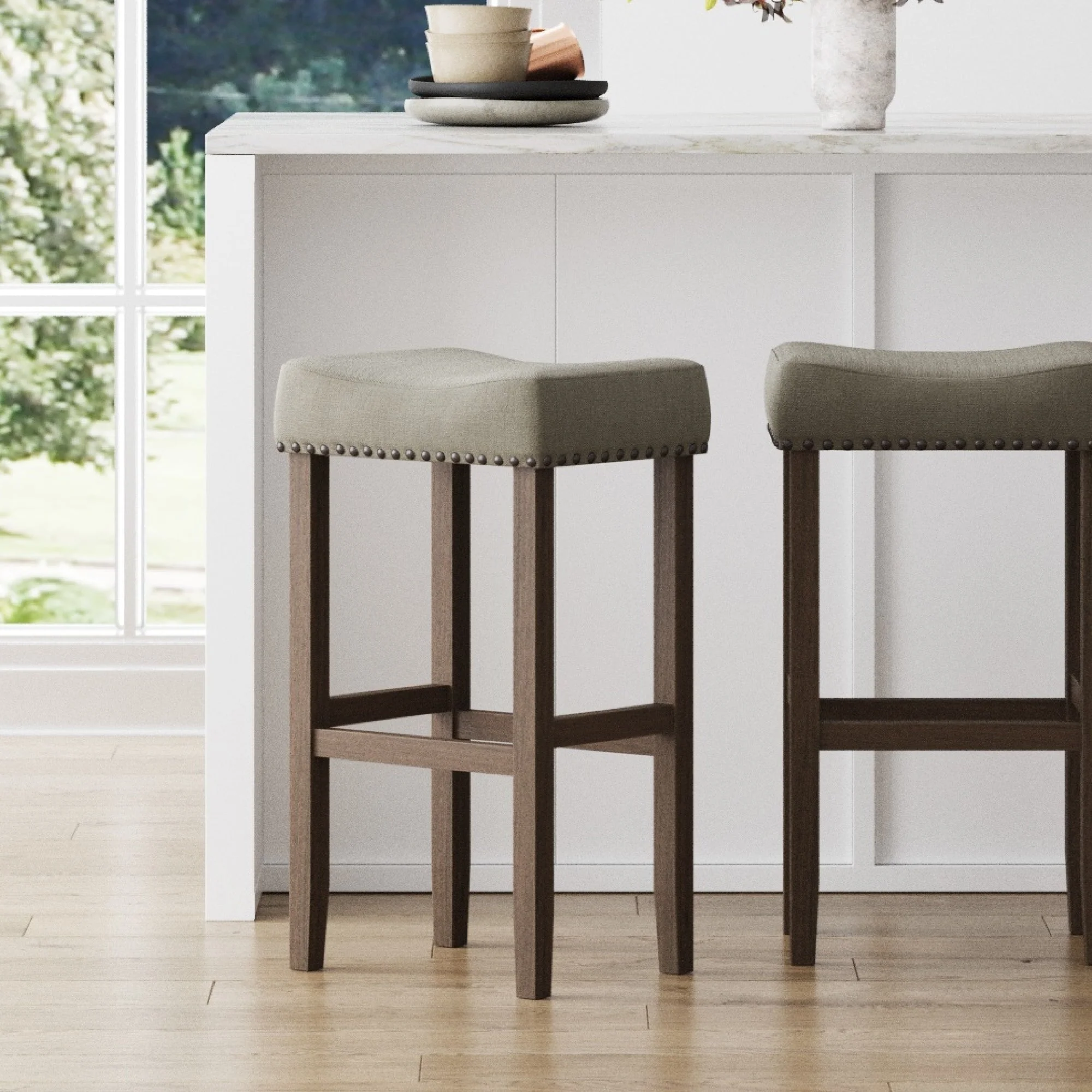 Wood Upholstered Saddle Seat Bar Stool
