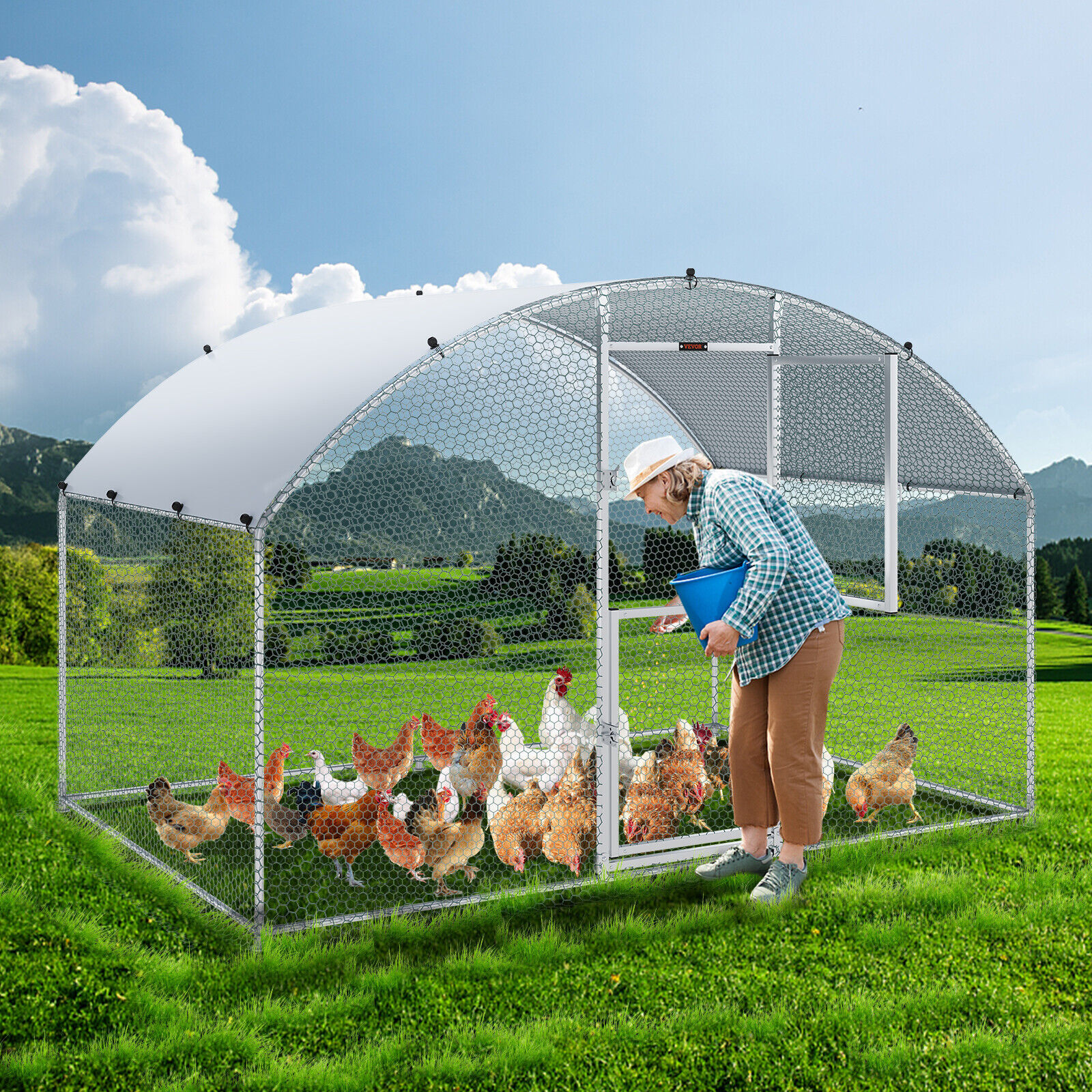 VEVOR Large Metal Chicken Coop Walk-In Chicken Run 6.6x9.8x6.6 ft Dome Roof