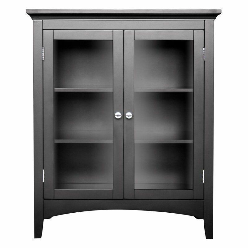 Espresso Wooden Linen Storage Floor Cabinet Towel Shelves Organizer Glas...
