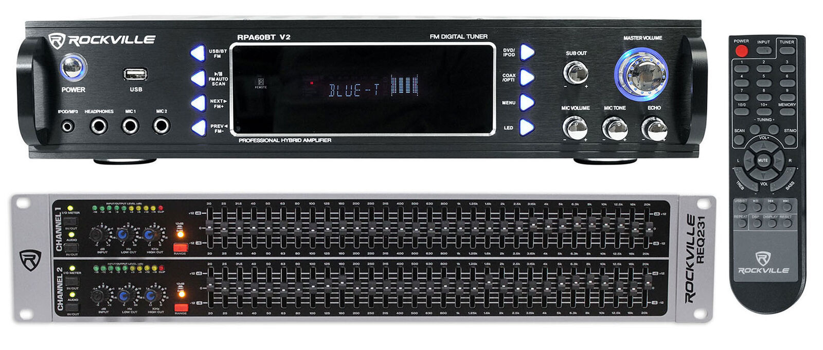 Rockville RPA60BT 1000 Watt Bluetooth Home Receiver+Dual 31 Band EQ Equa...