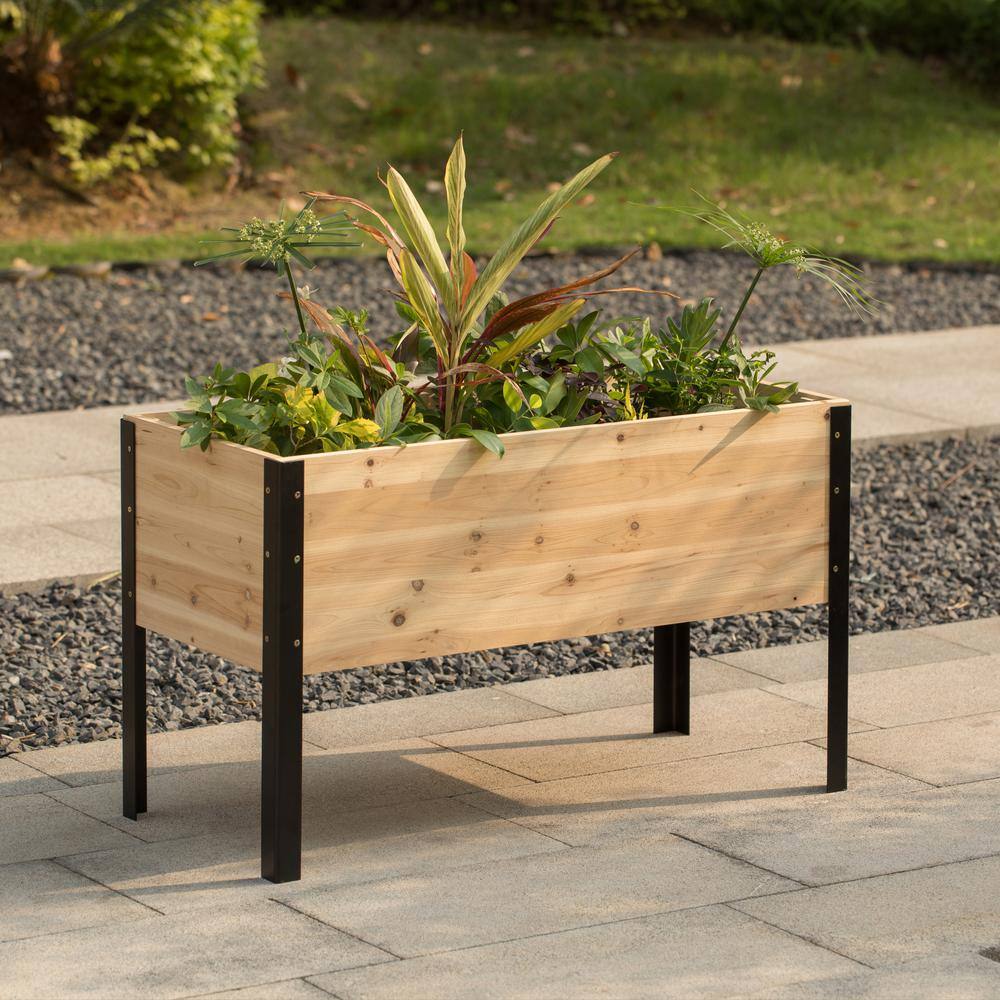 Gardenised Elevated Natural Wood Rectangular Outdoor Raised Planter Bed Box Solid with Steel Legs