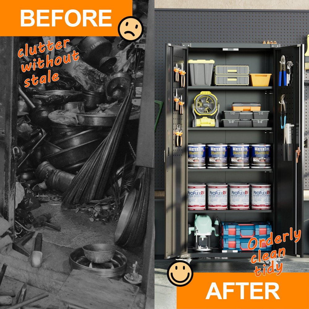 GangMei 72 in Metal Garage Storage Cabinet with Wheels and Pegboard, Black Tall Rolling Tool Cabinet with 4 Adjustable Shelves