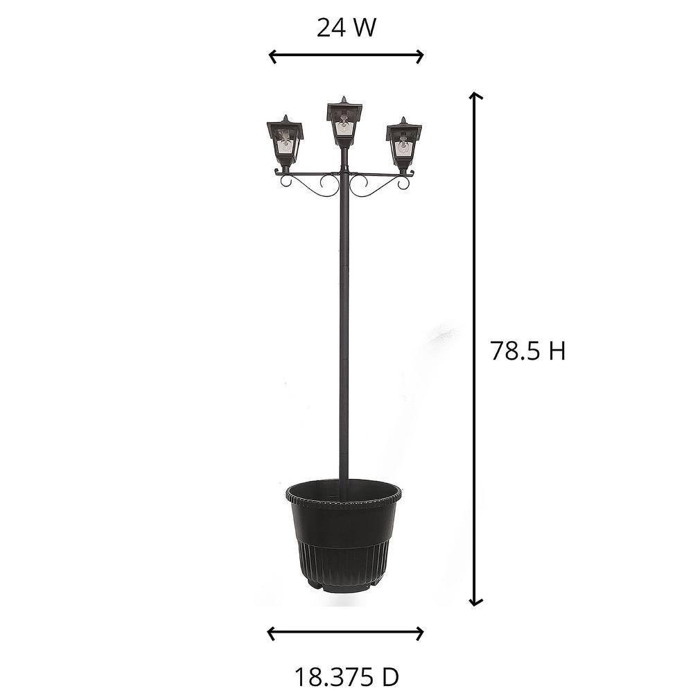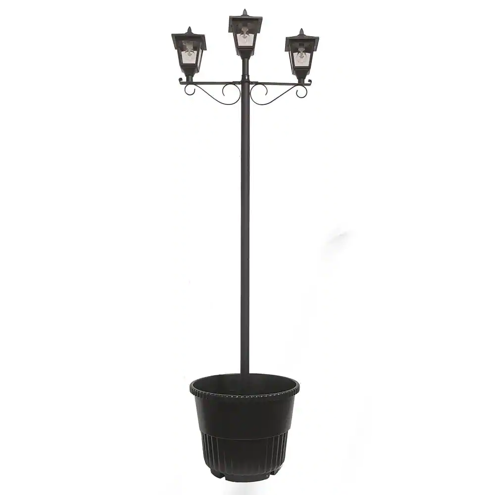 GAMA SONIC Triple Head Black Outdoor Solar Lamp Post Set with Round Planter