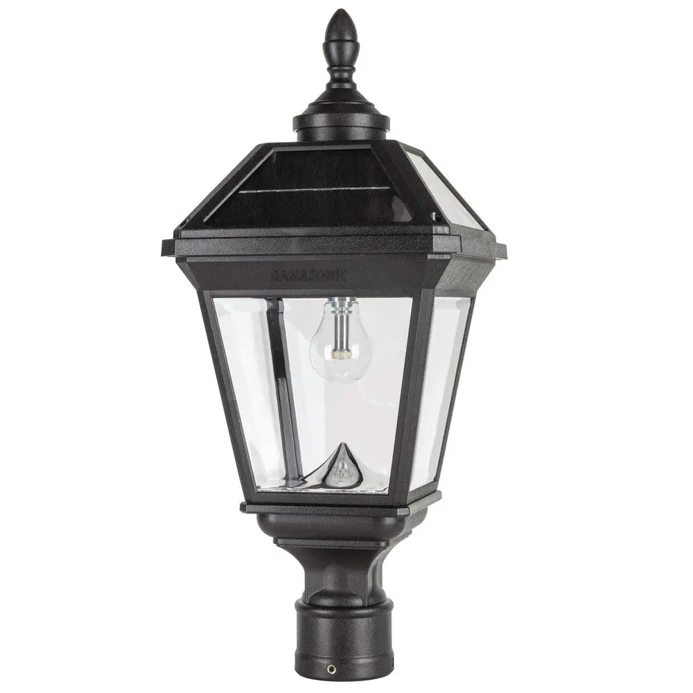 GAMA SONIC Imperial II Bulb 1-Light Black Resin LED Outdoor Solar Post Light with 3 in. Fitter