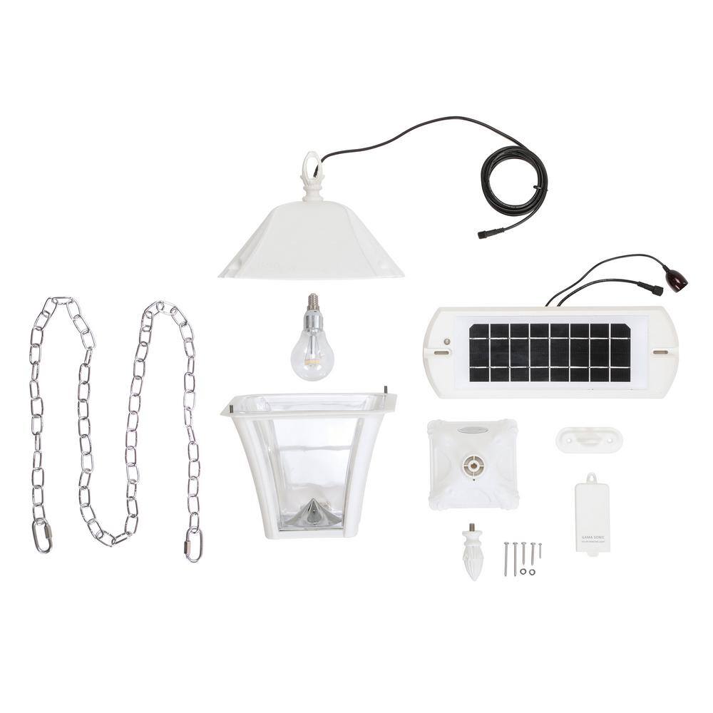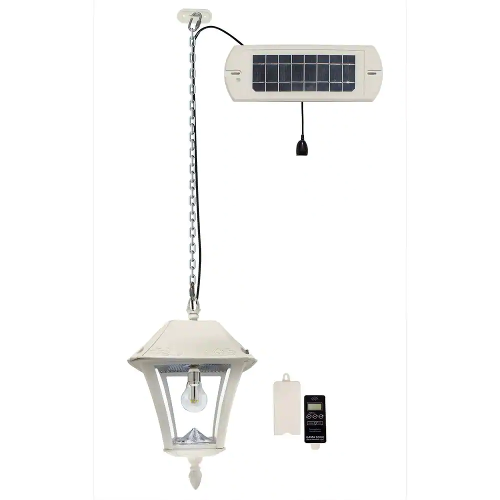 GAMA SONIC Baytown II Solar 1-Light White Outdoor Pendant Chandelier Hanging Light With Remote Control For Pergola Gazebo Pavilion