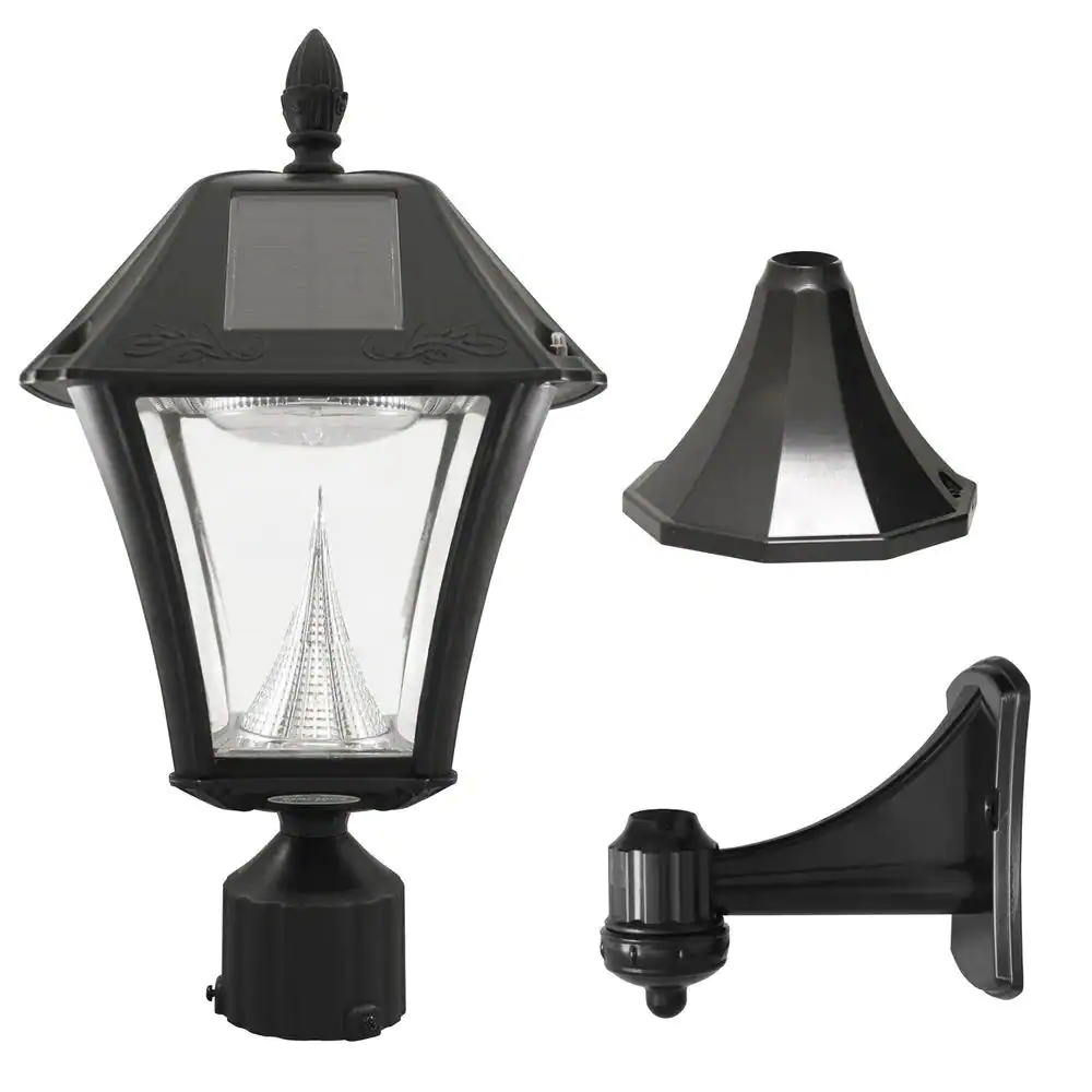 GAMA SONIC Baytown II Black Resin Outdoor Integrated LED Solar Post Light/Wall Sconce with Bright-White LEDs