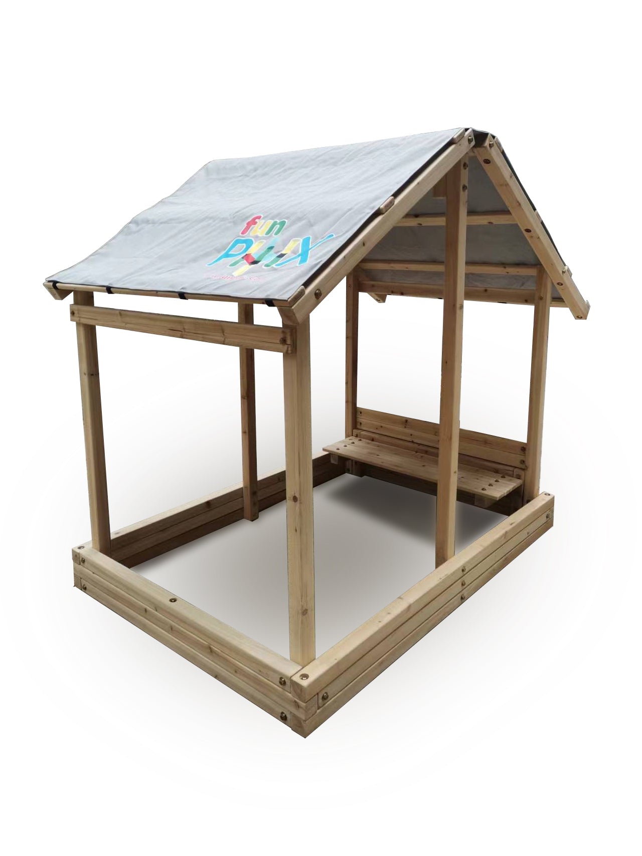 Funphix Dig nFT Play Wooden Sandbox Playhouse with Bench and Flower Planter, Outdoor Sand Pit for Kids