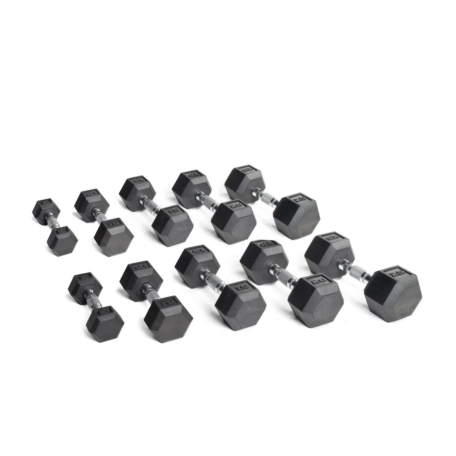 Fuel Pureformance by CAP 150 lb Coated Rubber Hex Dumbbell Weight Set with A-Frame Rack, Black
