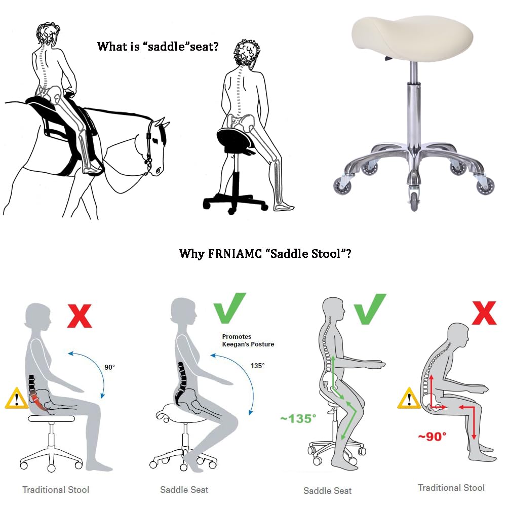 FRNIAMC Professional Saddle Stool with Wheels Ergonomic Swivel Rolling Height Adjustable