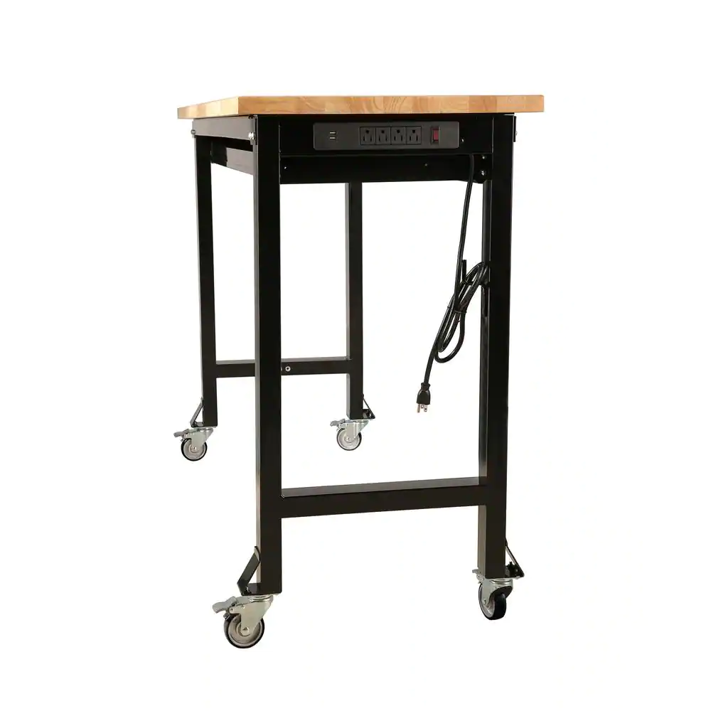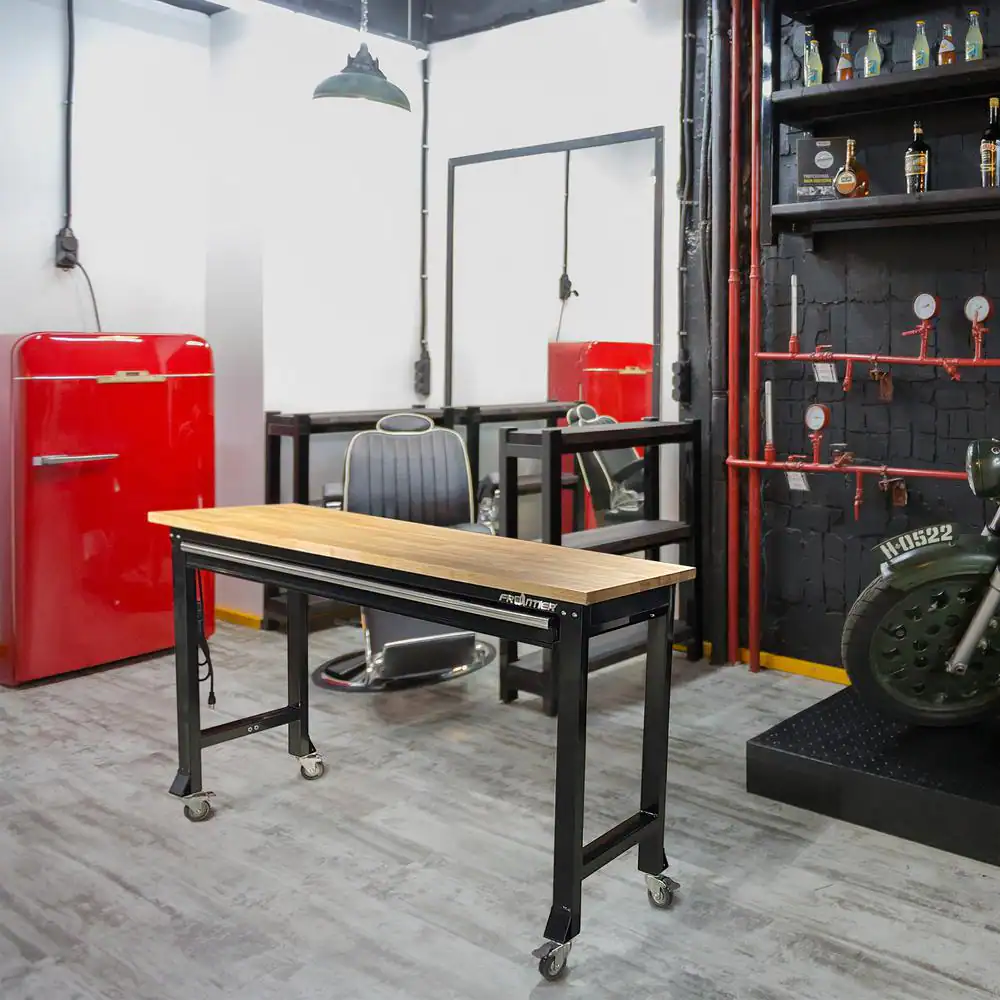 Frontier 5 ft. Workbench with Rubber Wood Top, Single Drawer and Casters