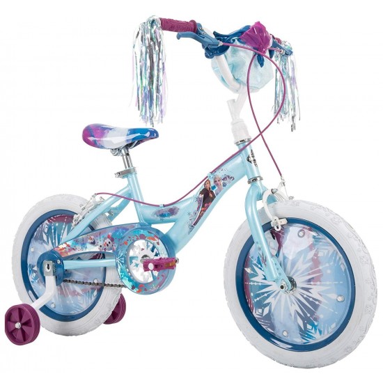 Frozen 2 Kid Bike, Training Wheels, Streamers & Basket Included, 16 inch, Blue