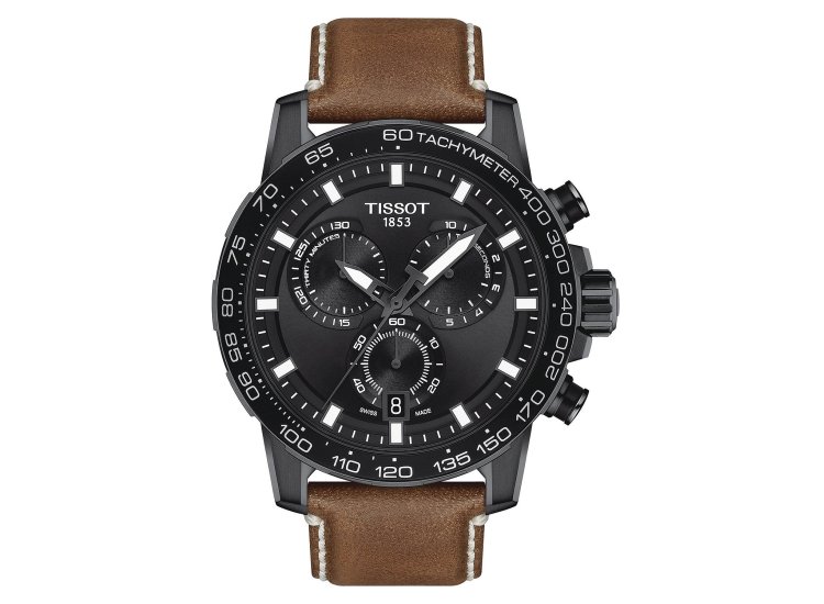 Tissot Supersport Chrono Black Dial Beige Leather Strap Watch, 45.5mm - T1256173605101