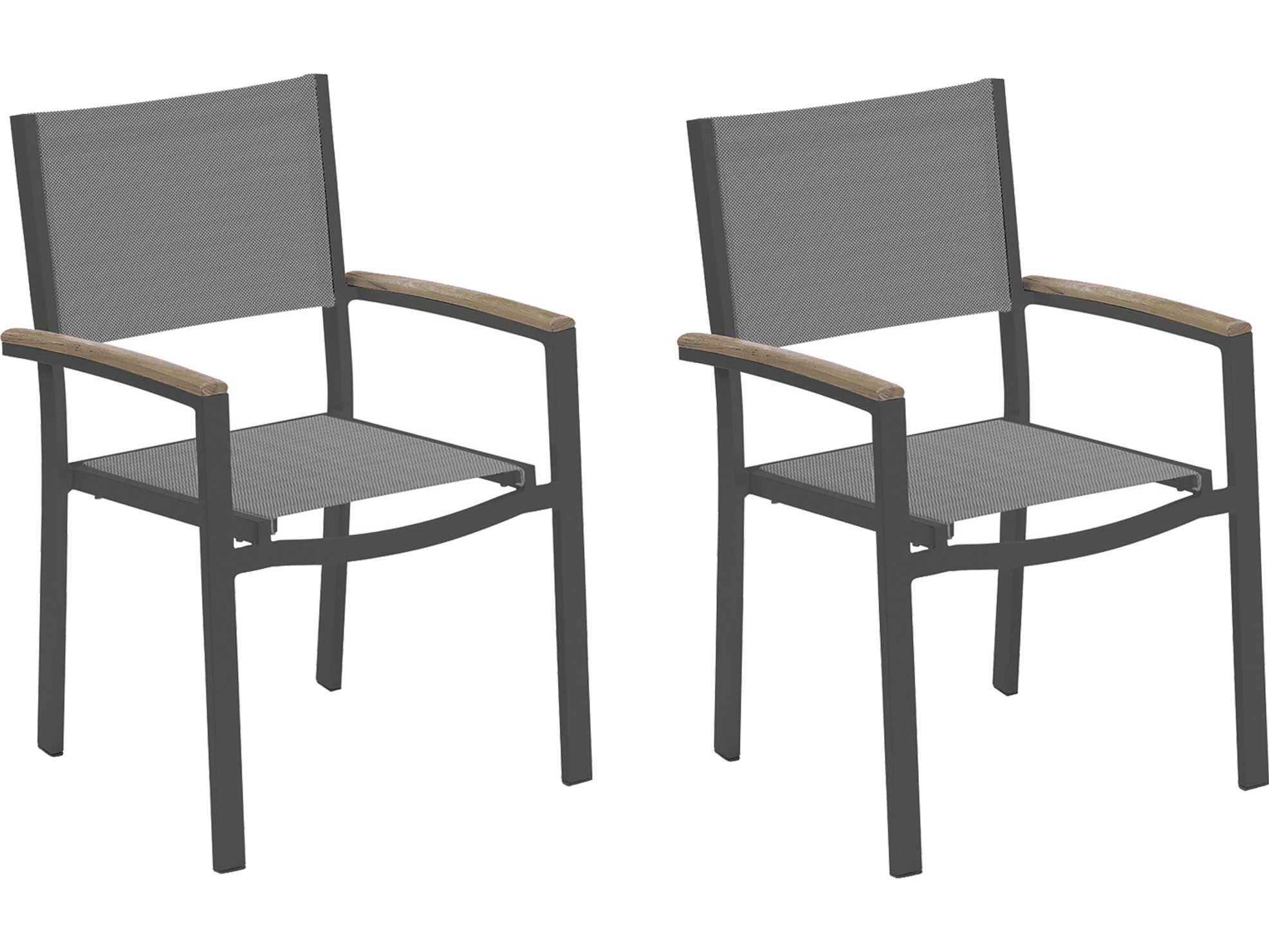 Travira Aluminum Carbon Stackable Dining Arm Chair with Titanium Sling (Price Includes 2)
