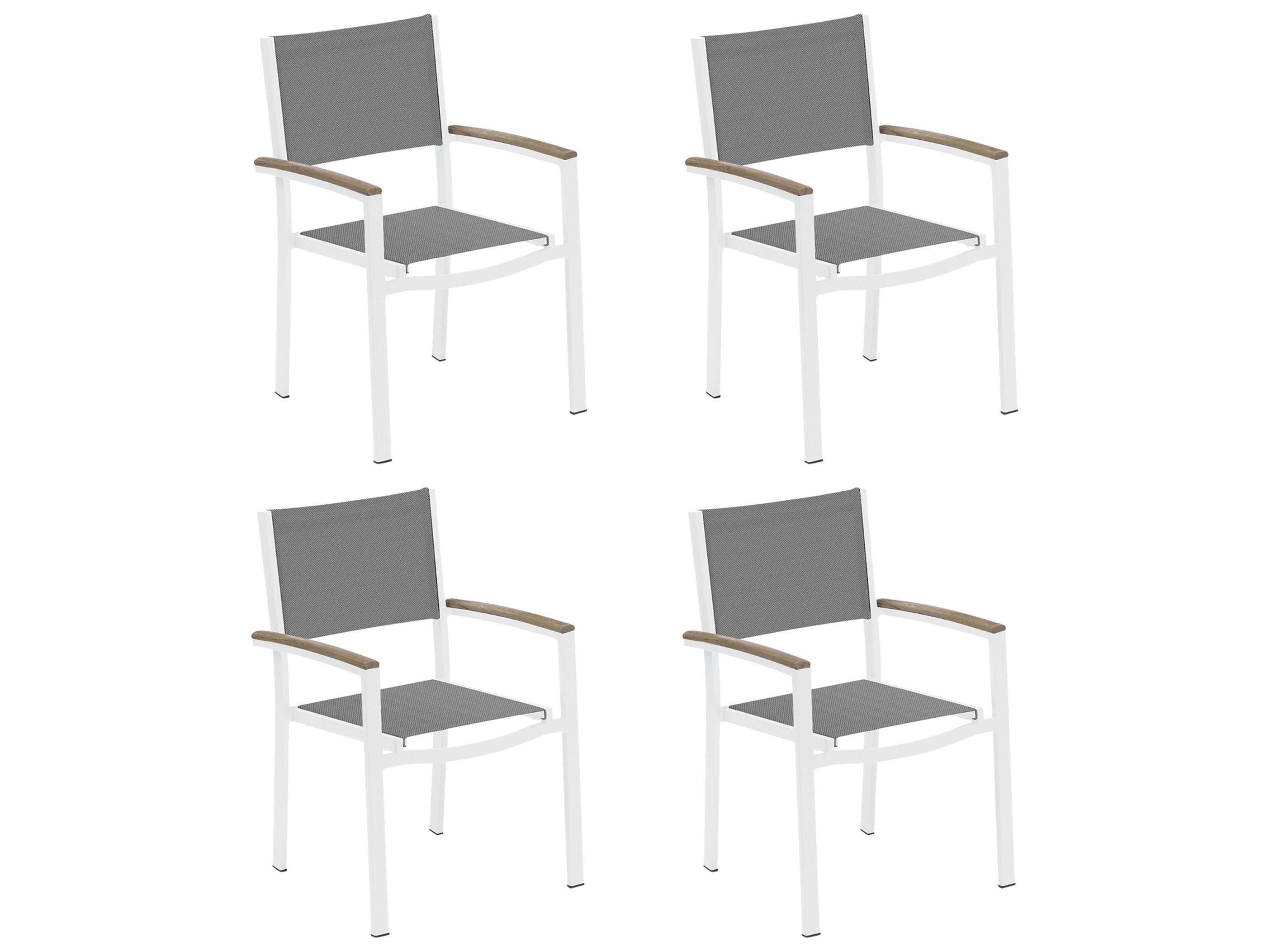 Travira Aluminum Chalk Stackable Dining Arm Chair with Titanium Sling (Price Includes 4)