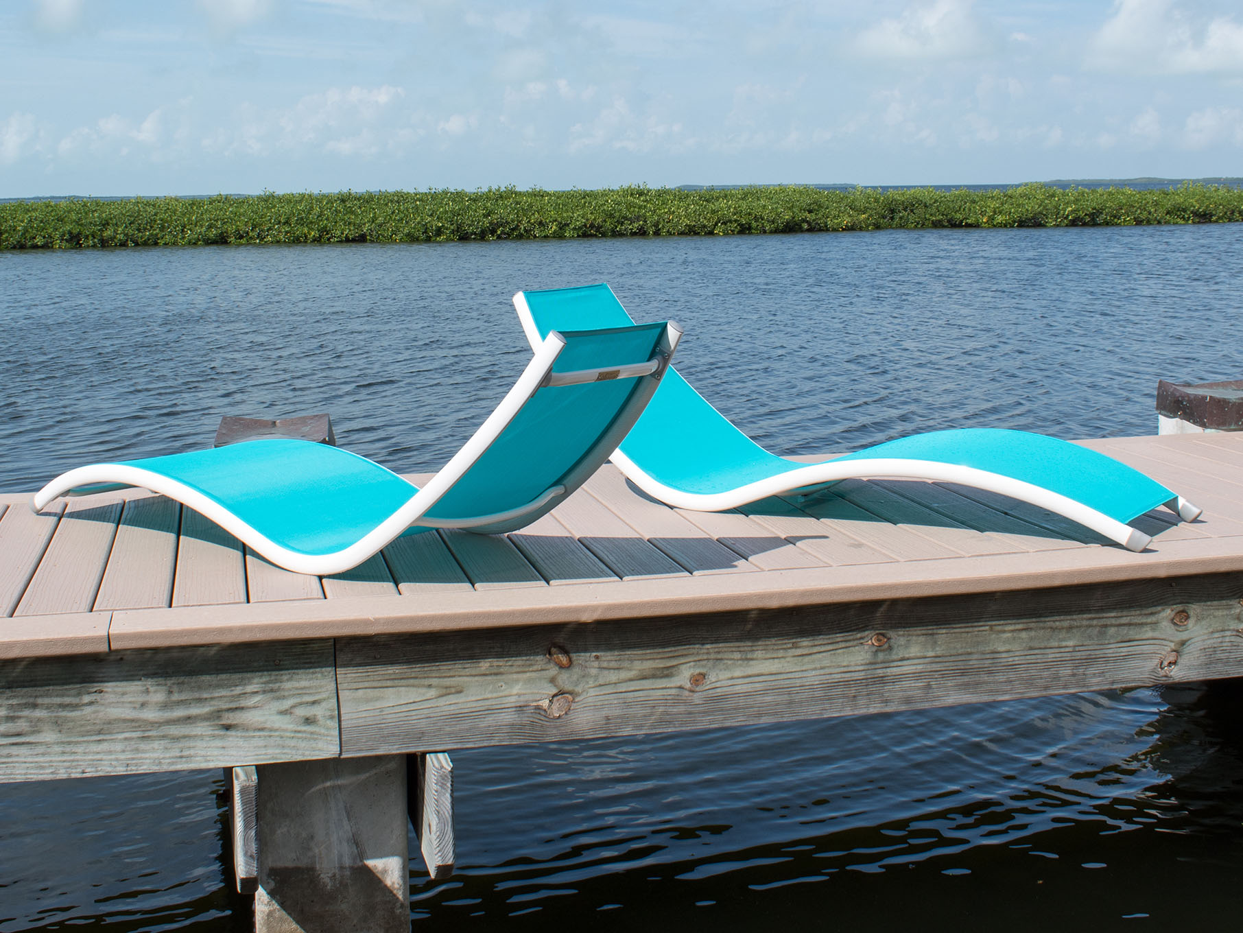 Helix Aluminum Sling White/Teal Stackable Chaise Lounge (Set of 2)