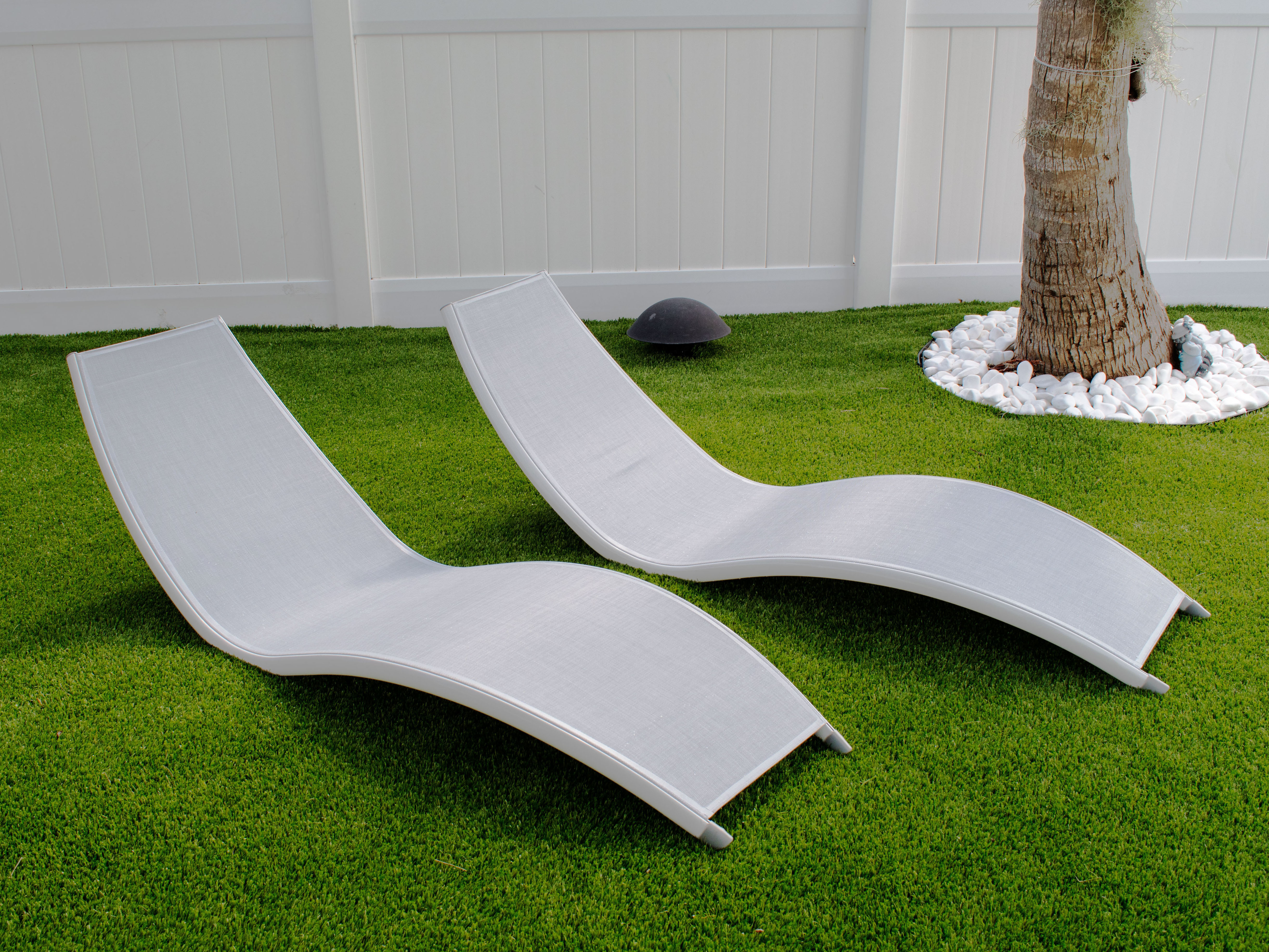 Helix Aluminum Sling White/Grey Stackable Chaise Lounge (Set of 2)