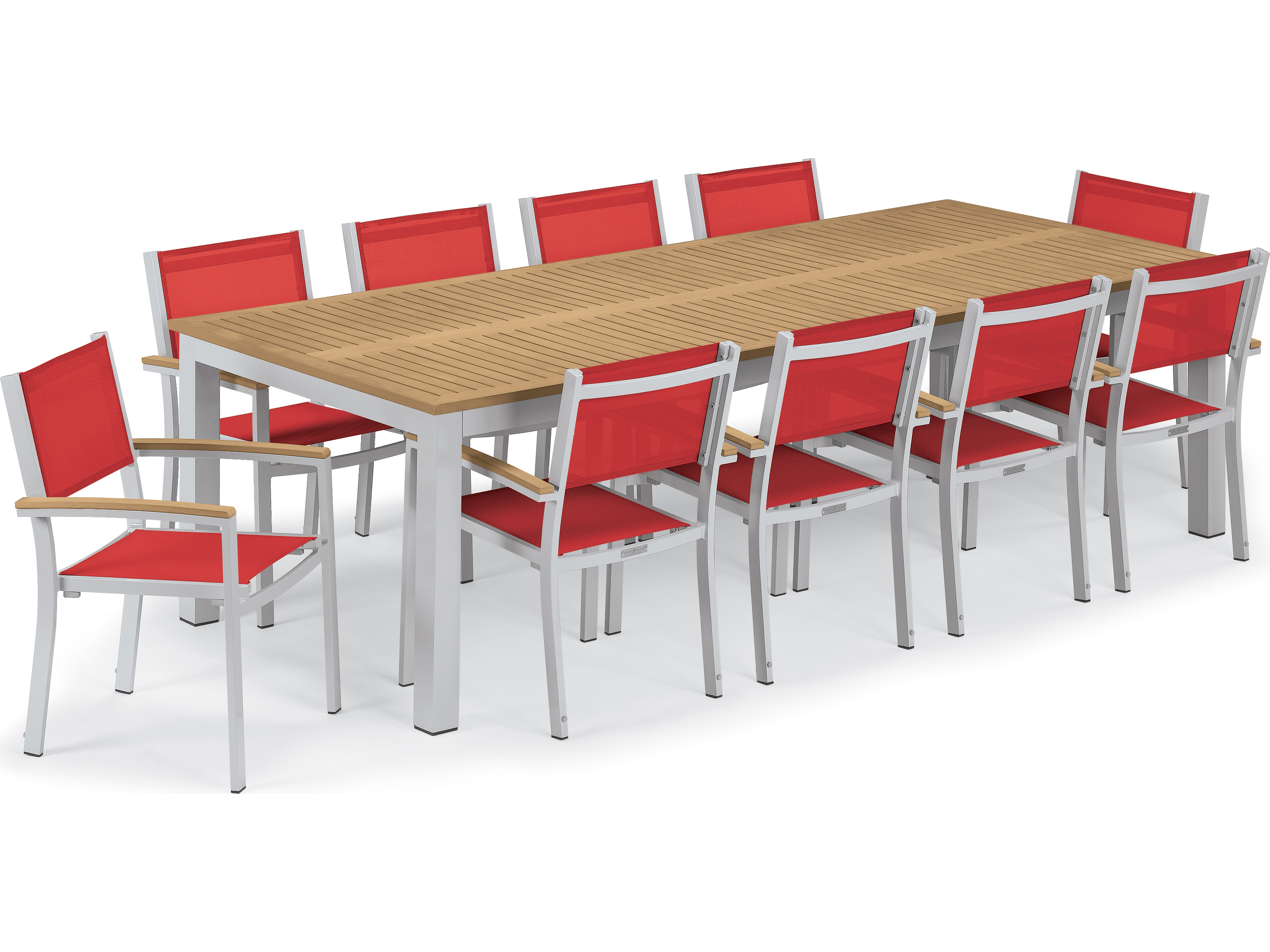 Travira Aluminum Flint 11 Piece Dining Set with Red Sling
