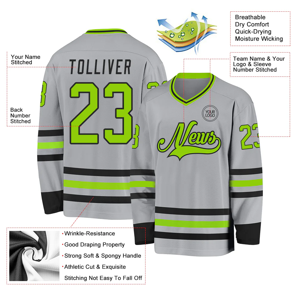 Custom Gray Neon Green-Black Hockey Jersey