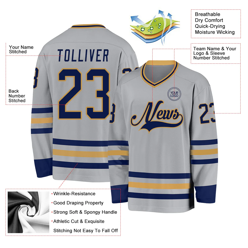 Custom Gray Navy-Old Gold Hockey Jersey