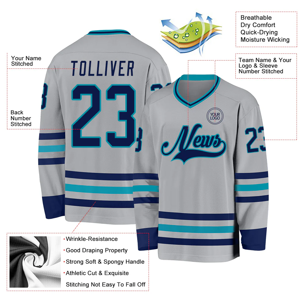 Custom Gray Navy-Teal Hockey Jersey