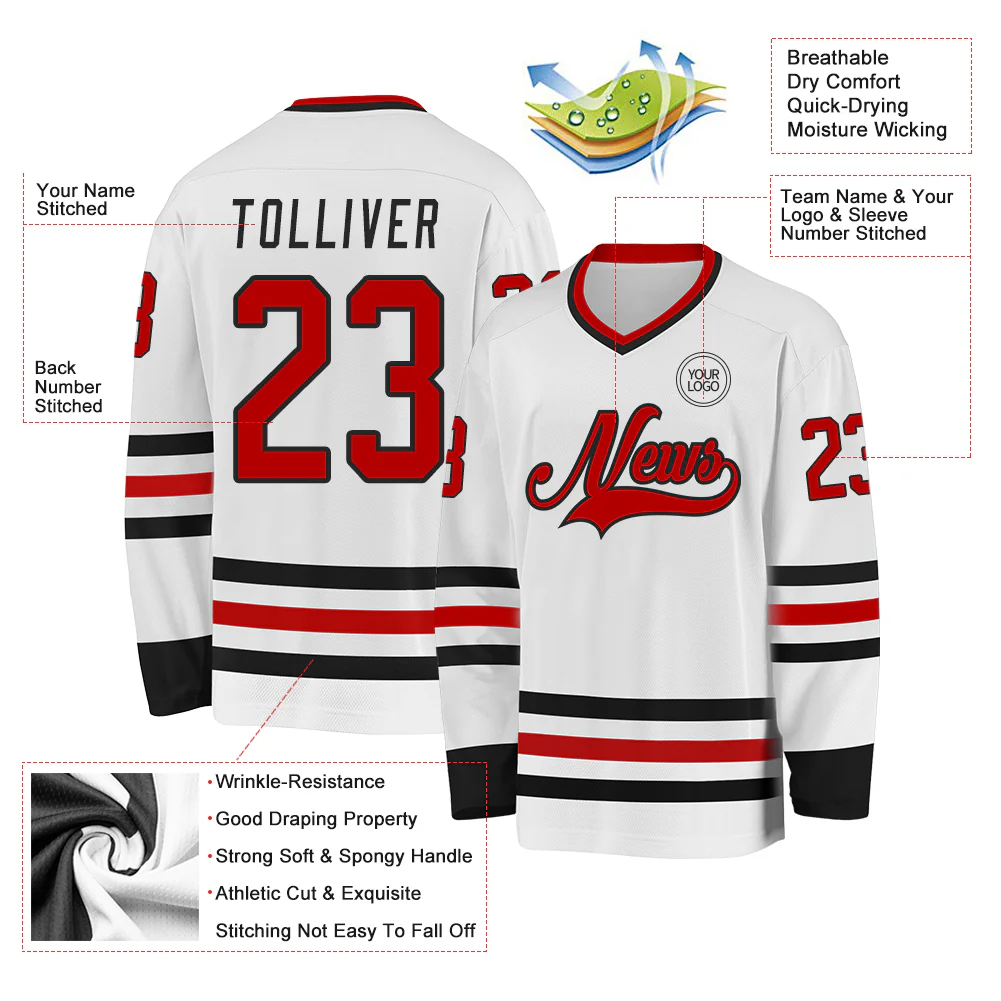 Custom White Red-Black Hockey Jersey