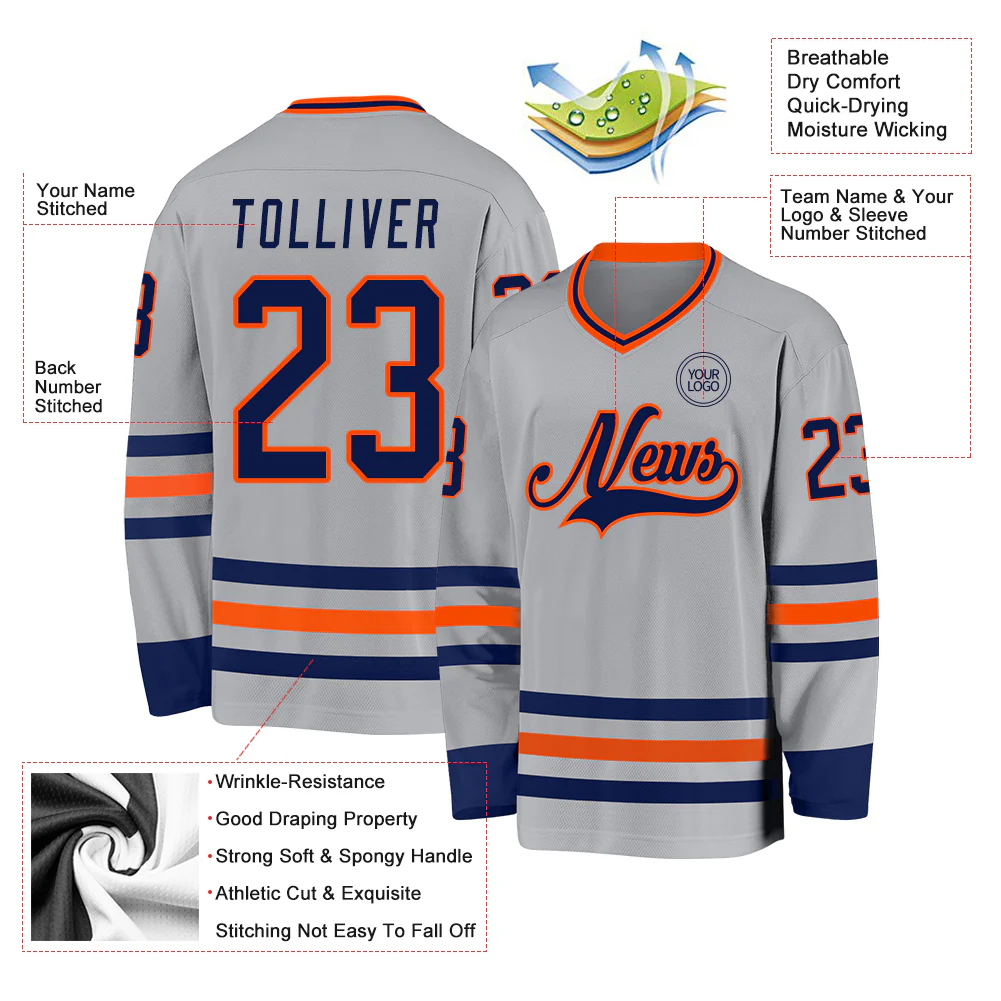 Custom Gray Navy-Orange Hockey Jersey