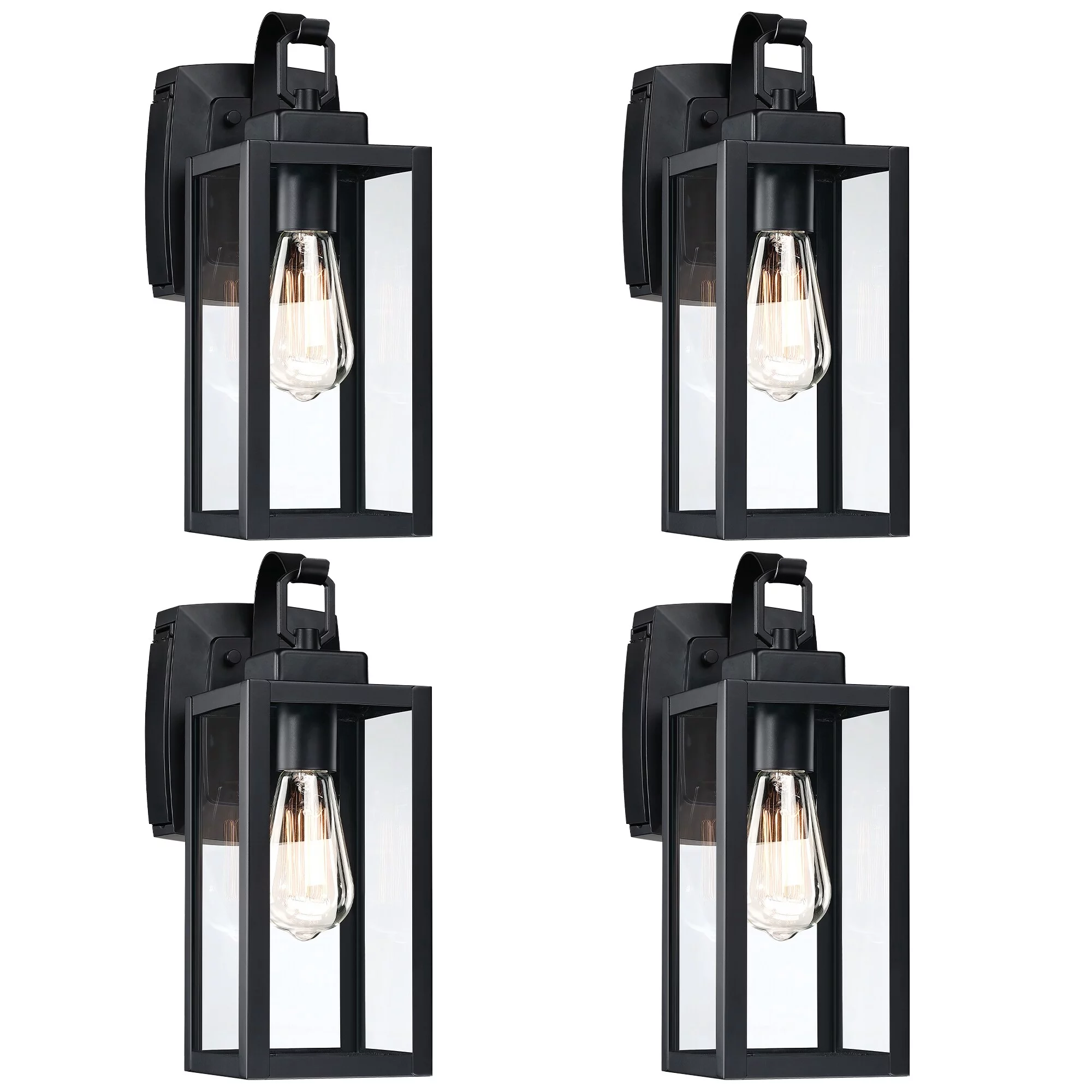 Pia Ricco 4 Pack 1-Light Outdoor Wall Lantern with Built-In GFCI Outlets - Matte Black