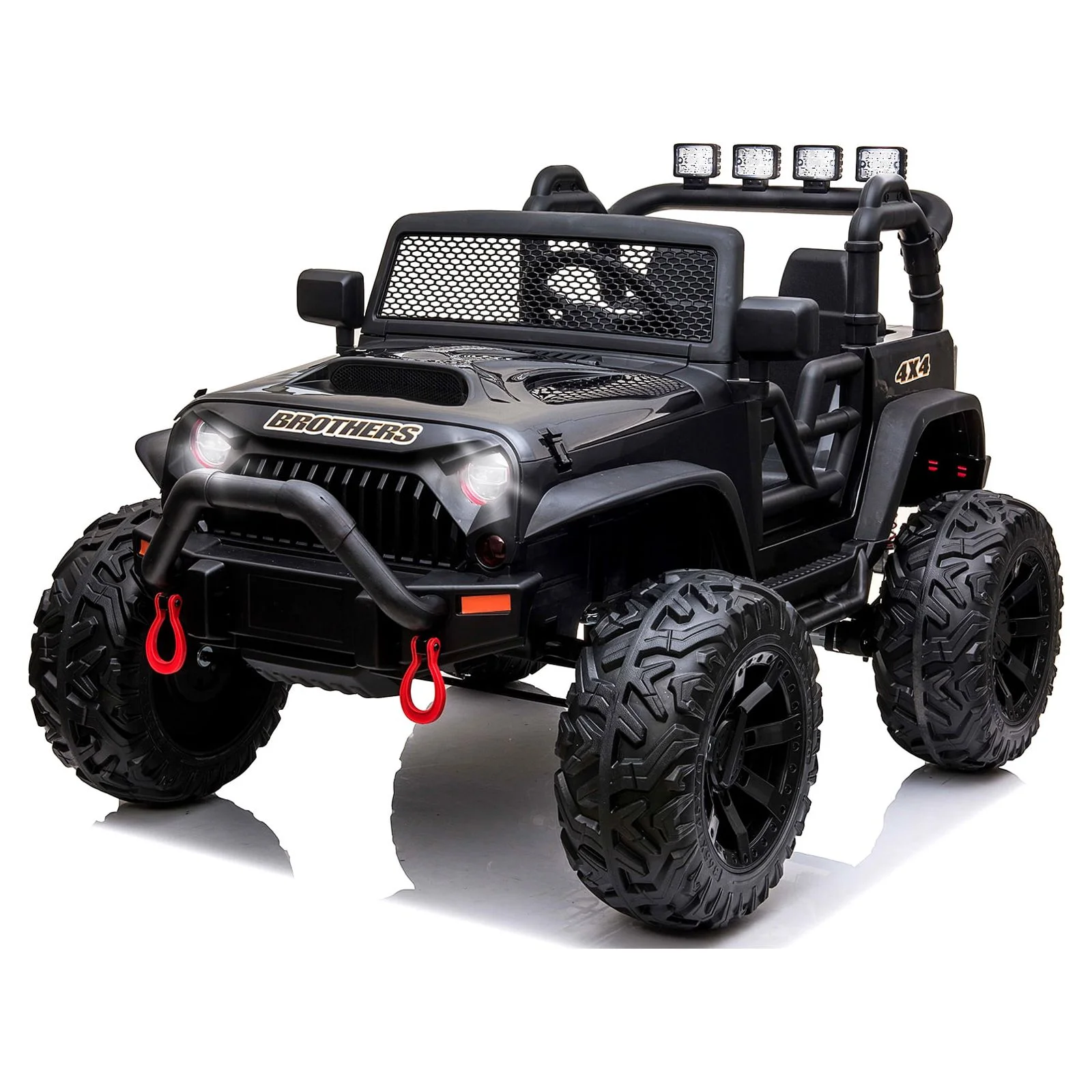 JOINATRE 24V 2-Seater Kids Ride on Car Truck, 48.4 4WD Battery Powered Electric Car w/ Remote Control, 14" Large Wheels, Suspension, Wide Seat, 3 Speed, LED Lights, Music for 3-8 Yrs Old, Black