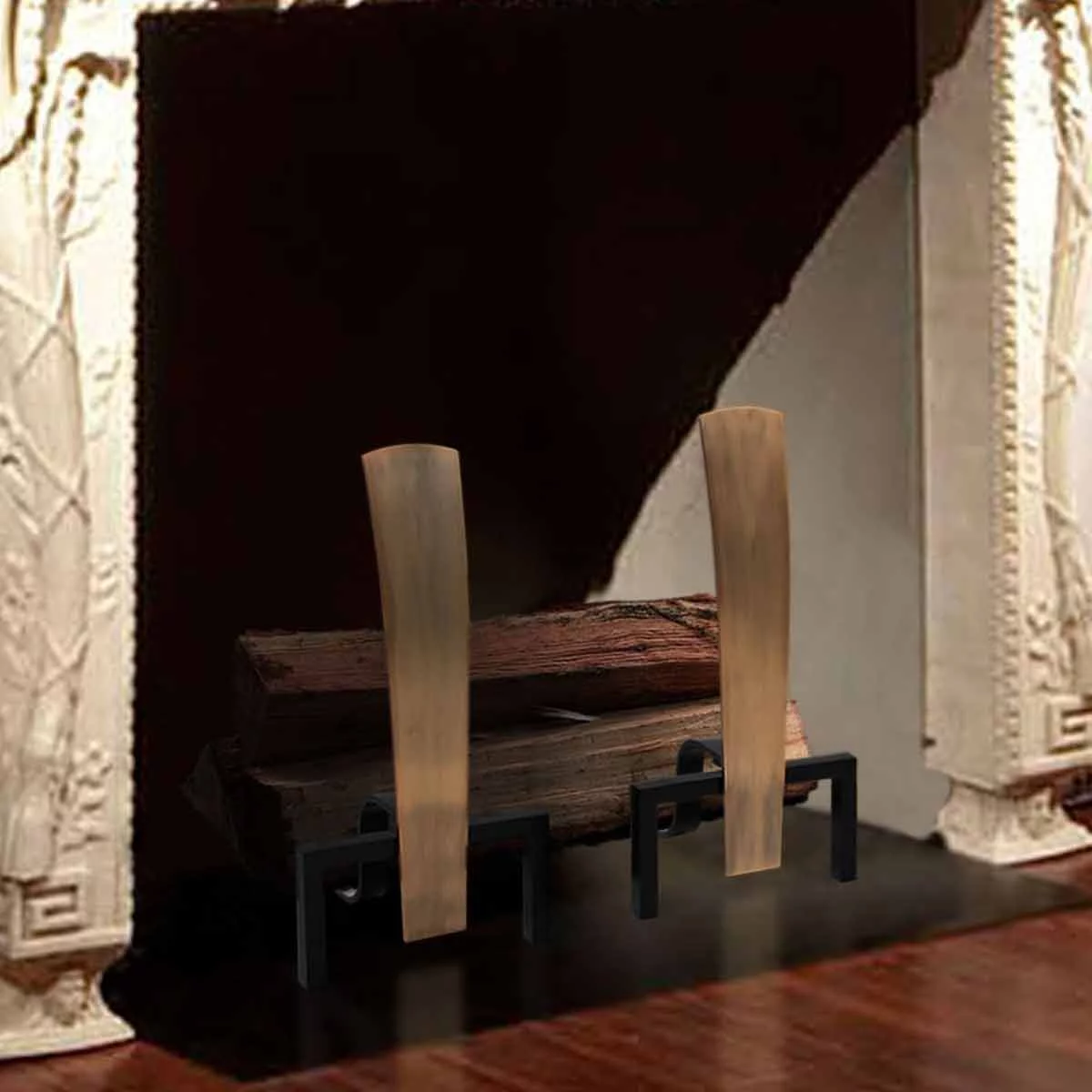 Pilgrim Antique Brass and Black Fonda Fireplace Andirons