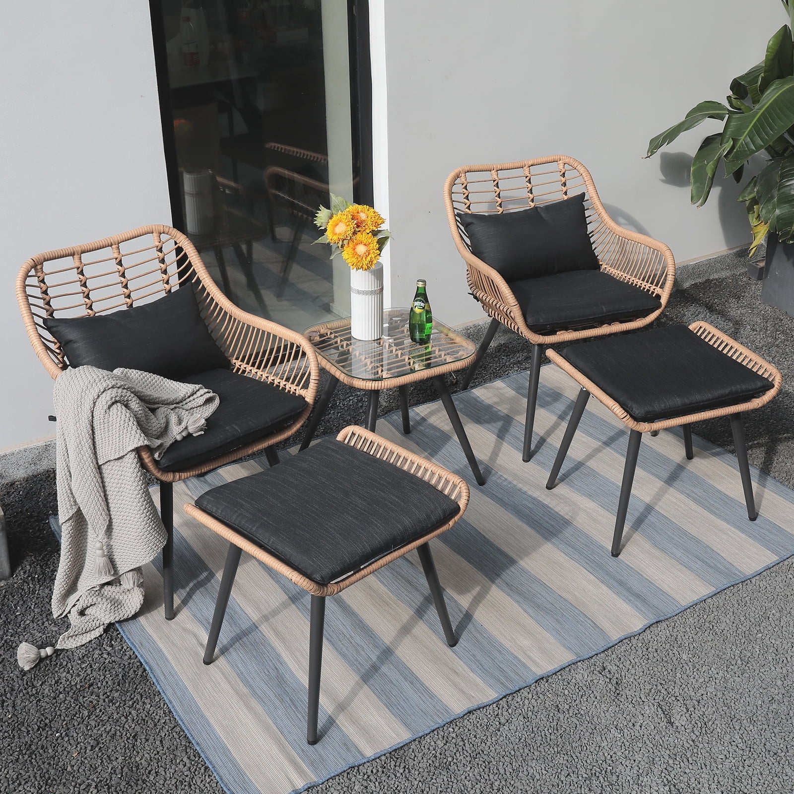 JOIVI 5-Piece Outdoor Patio Furniture Set, PE Rattan Wicker Small Set Porch, Cushioned Patio Chairs