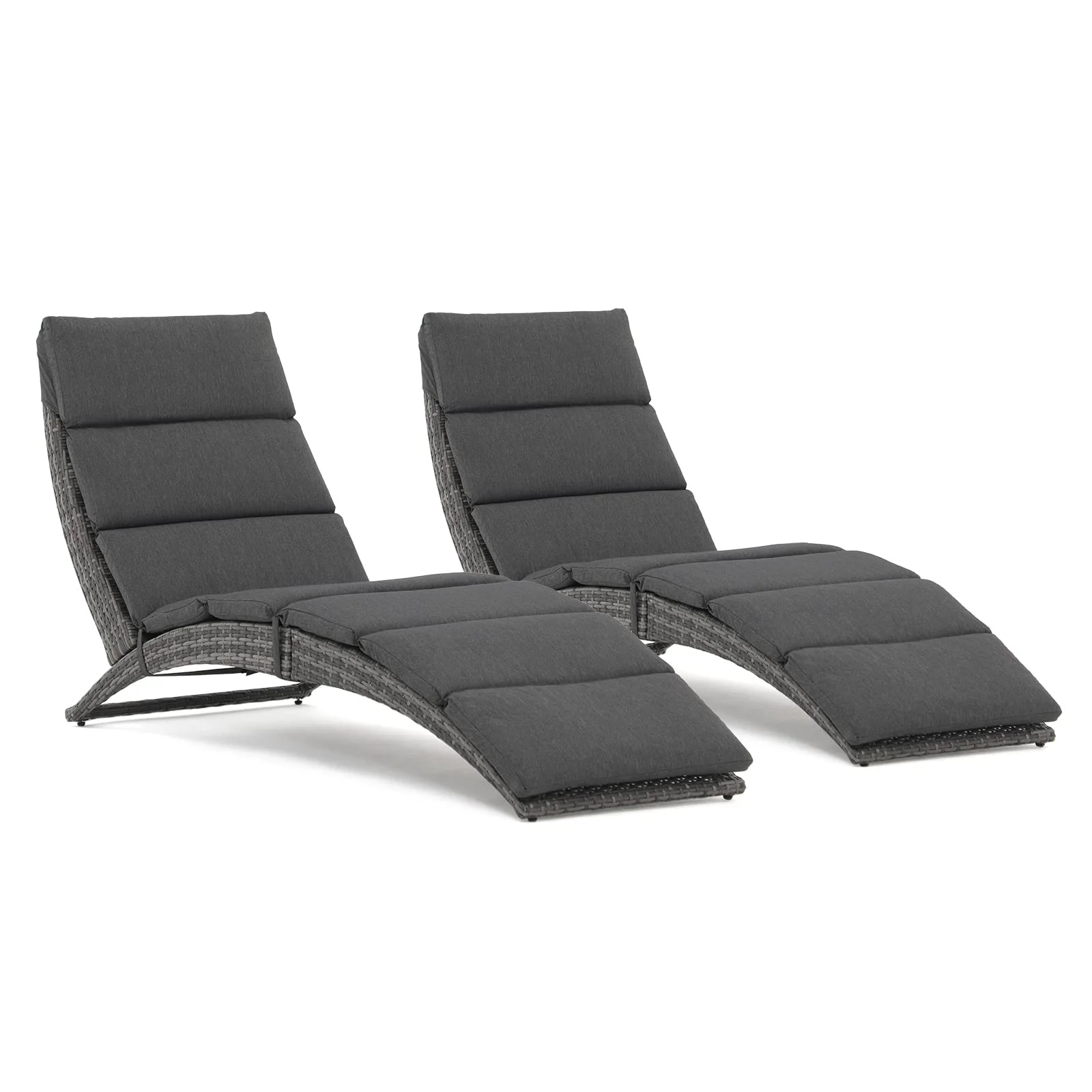 JOIVI Patio Chaise Lounge Chair, Outdoor Sun Lounger, PE Rattan Foldable Chaise with Removable Dark Gray Cushion, Suitable for Poolside, Garden, Balcony 2 Pack