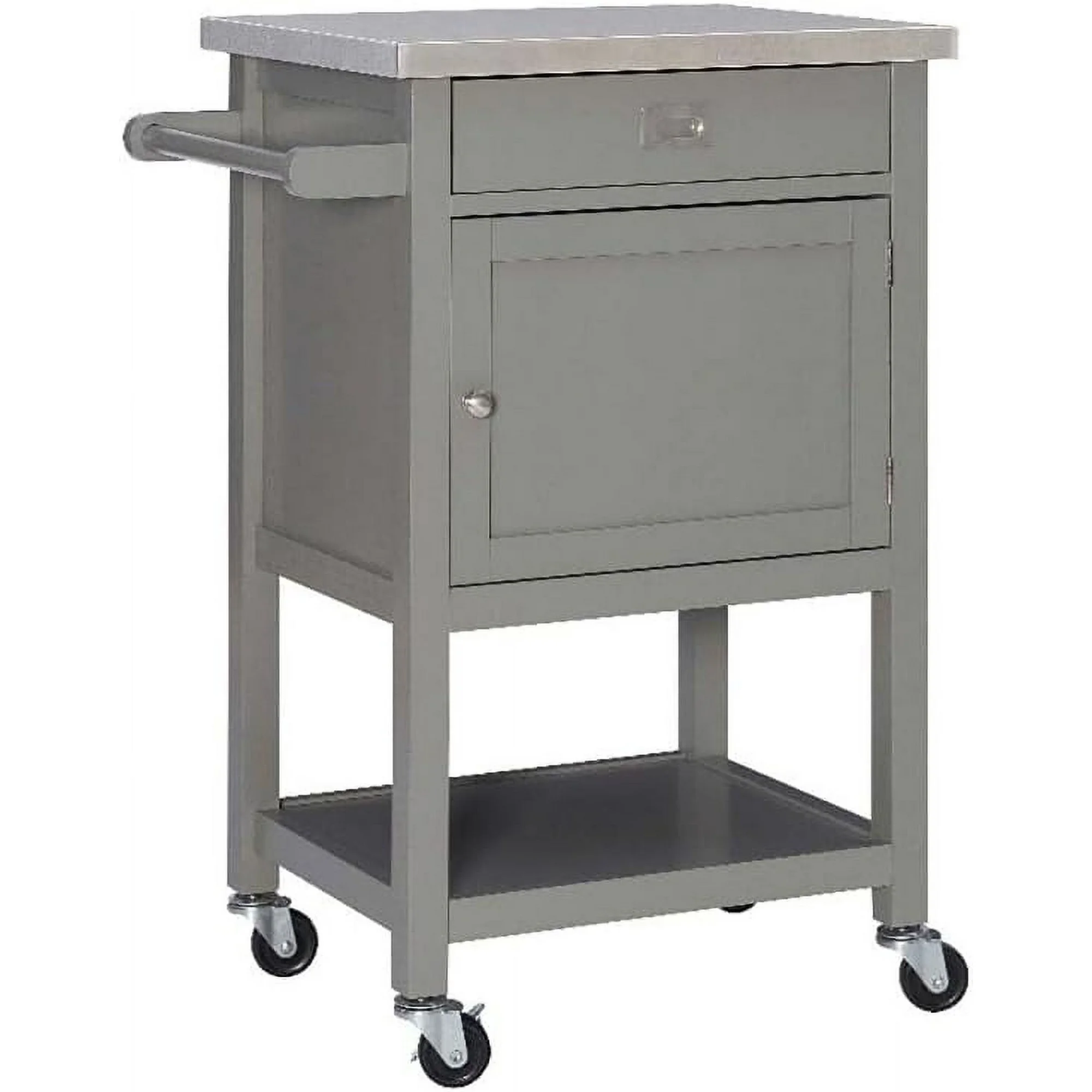 Pine Wood Stainless Steel Top Rolling Microwave Kitchen Island Cart in Gray