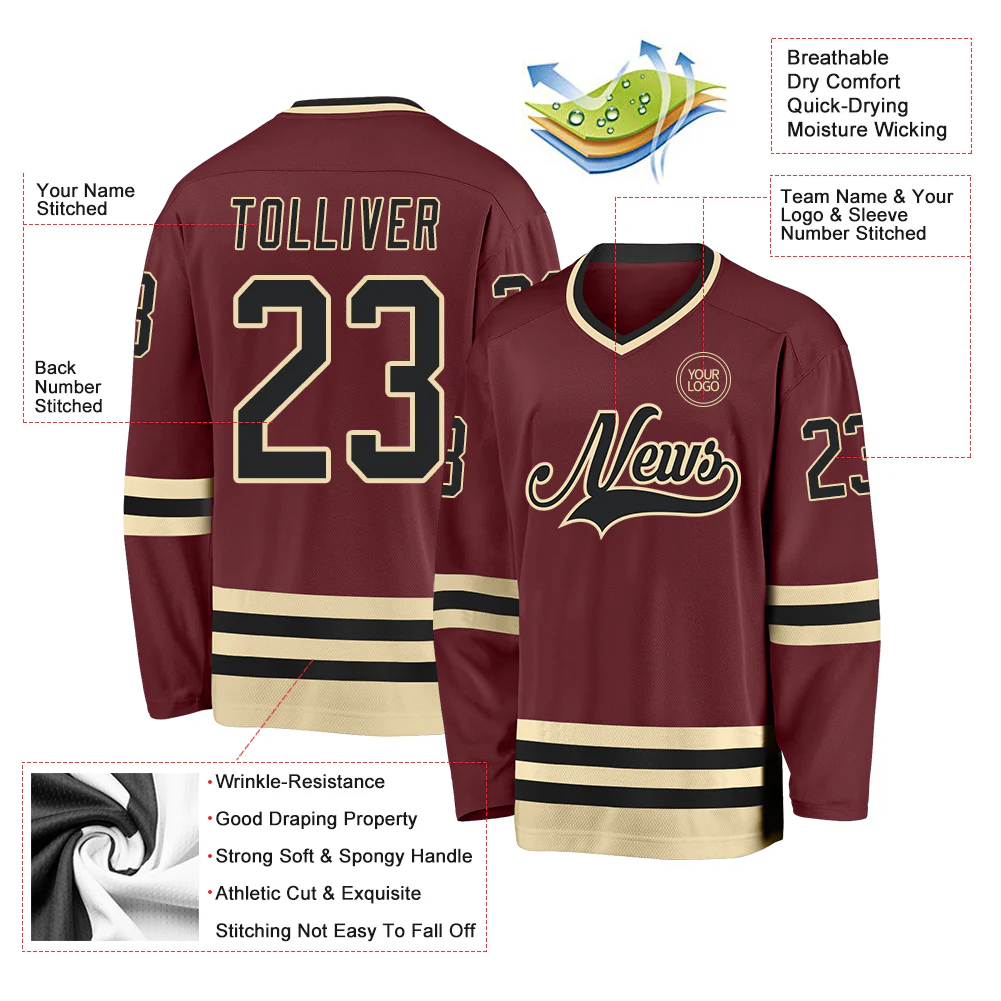 Custom Burgundy Black-Cream Hockey Jersey