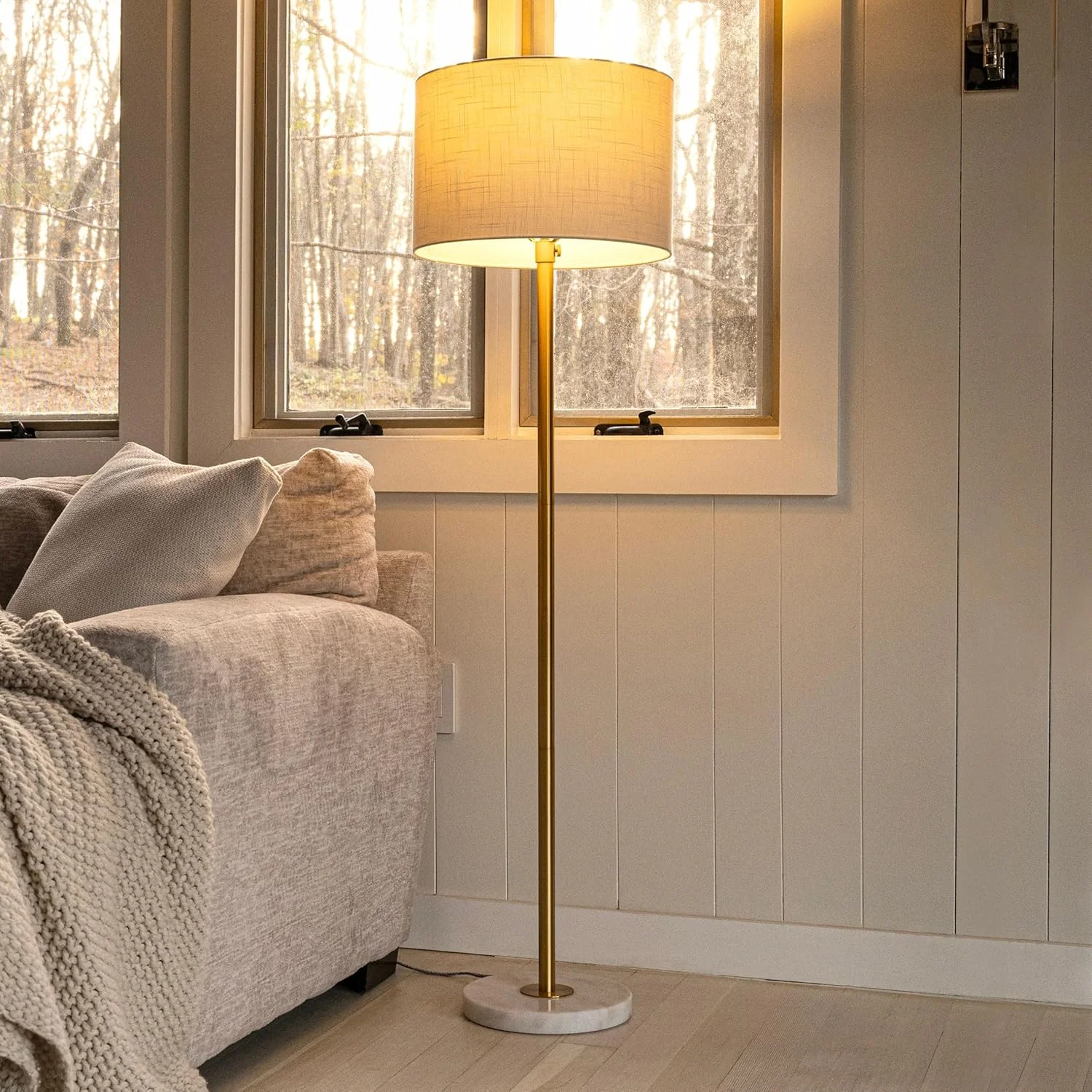 Jonathan Y Jyl3022A June 65" Adjustable Metal/Marble Led Floor Lamp, Modern, Contemporary, Elegant, Glam, Office, Living Room, Family Room, Dining Room, Bedroom, Hallway, Foyer, Brass