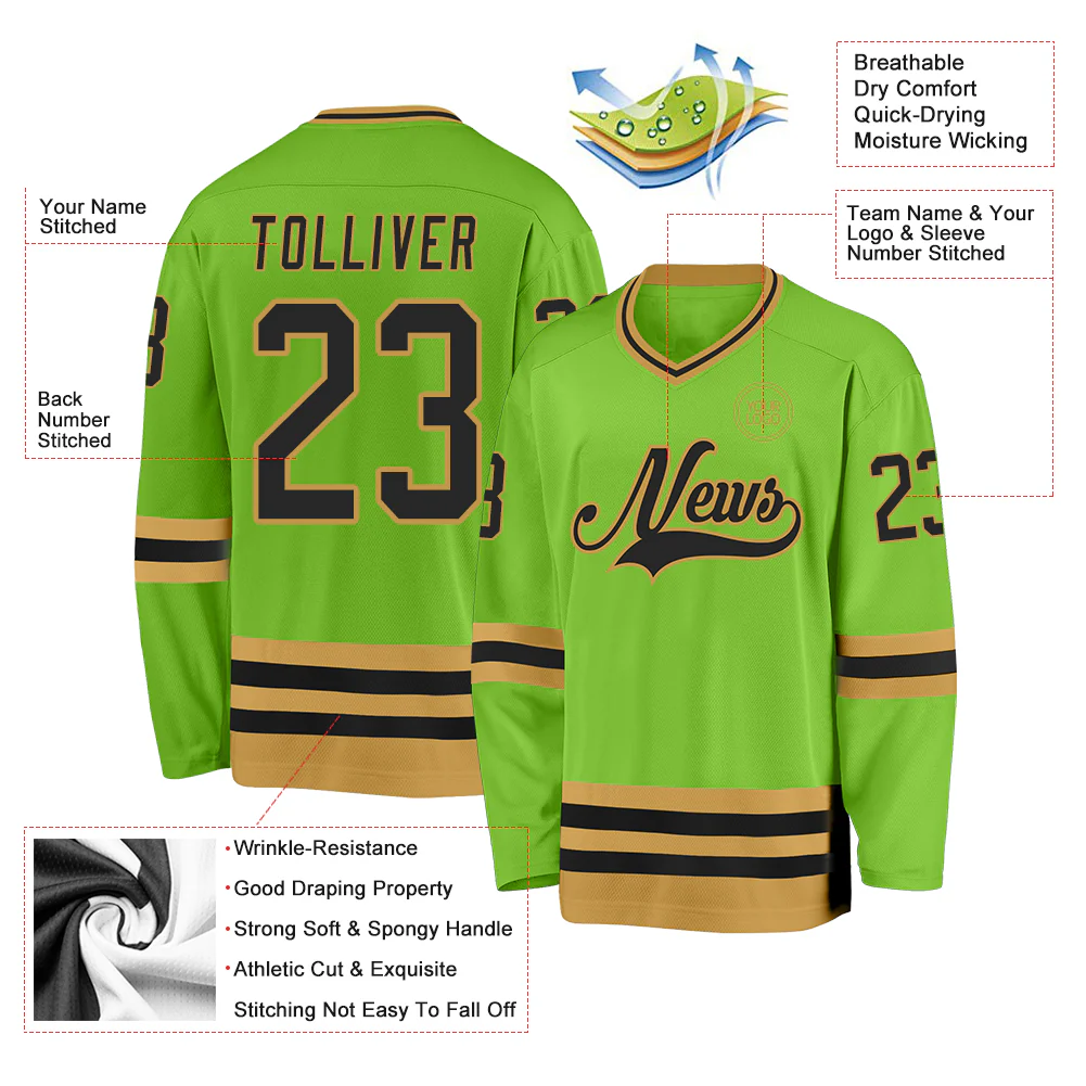 Custom Neon Green Black-Old Gold Hockey Jersey