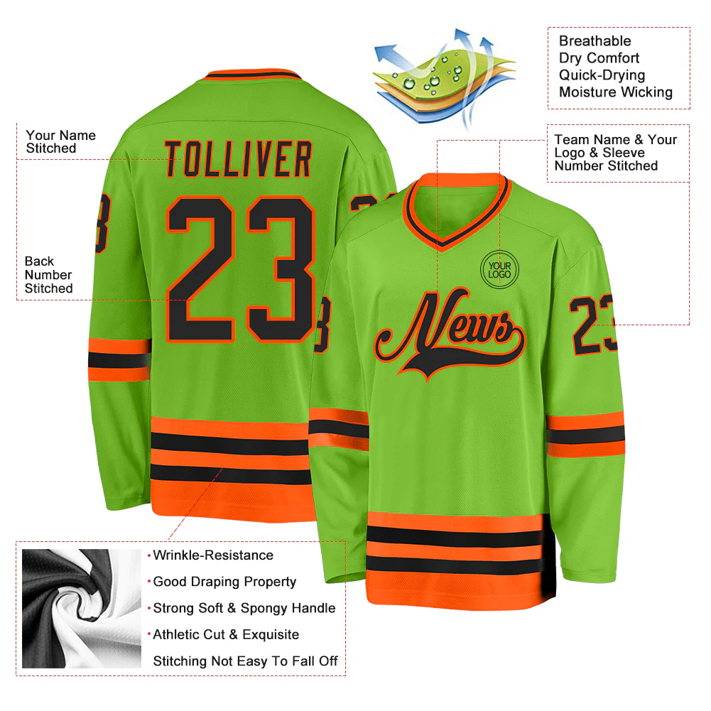Custom Neon Green Black-Orange Hockey Jersey